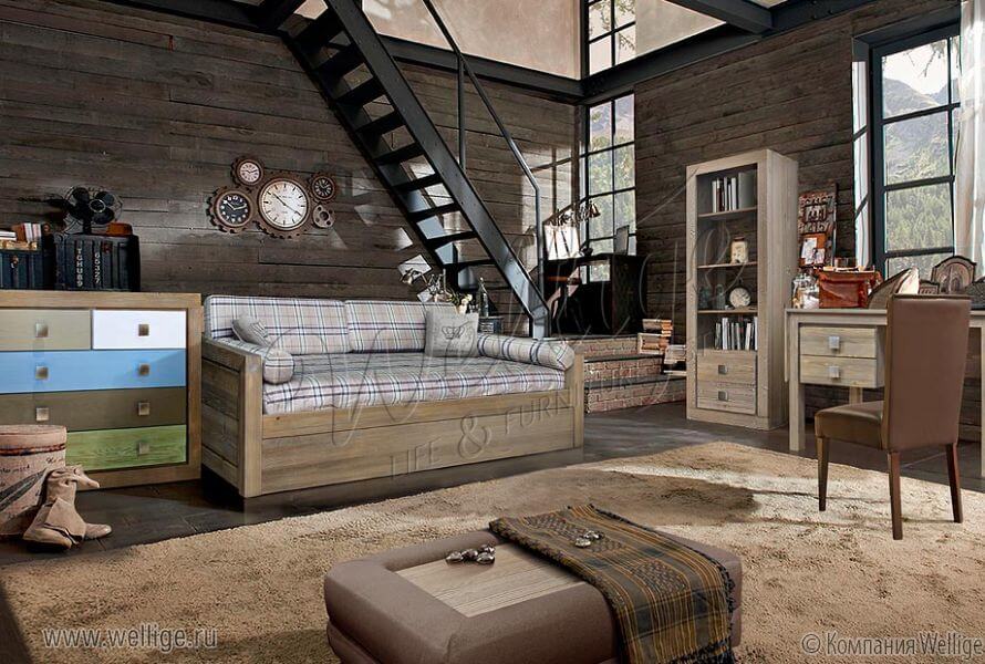 Нелишней окажется банкетка в стиле лофт и в детской комнате. Подобные изделия достаточно крепкие, чтобы выдержать игры неугомонных детишек. Плюс ко всему с них достаточно удобно спрыгивать. Попробуйте установить такую мягкую скамью в детской комнате у стола для творчества. Часто для детской комнаты они бывают выполнены в виде сундука или оборудованы открытой полкой для книг. Это очень удобно, малыши могут прятать там свои игрушки. Да и вообще, конструкция банкетки в виде сундука – это наиболее характерный вариант для стиля лофт.