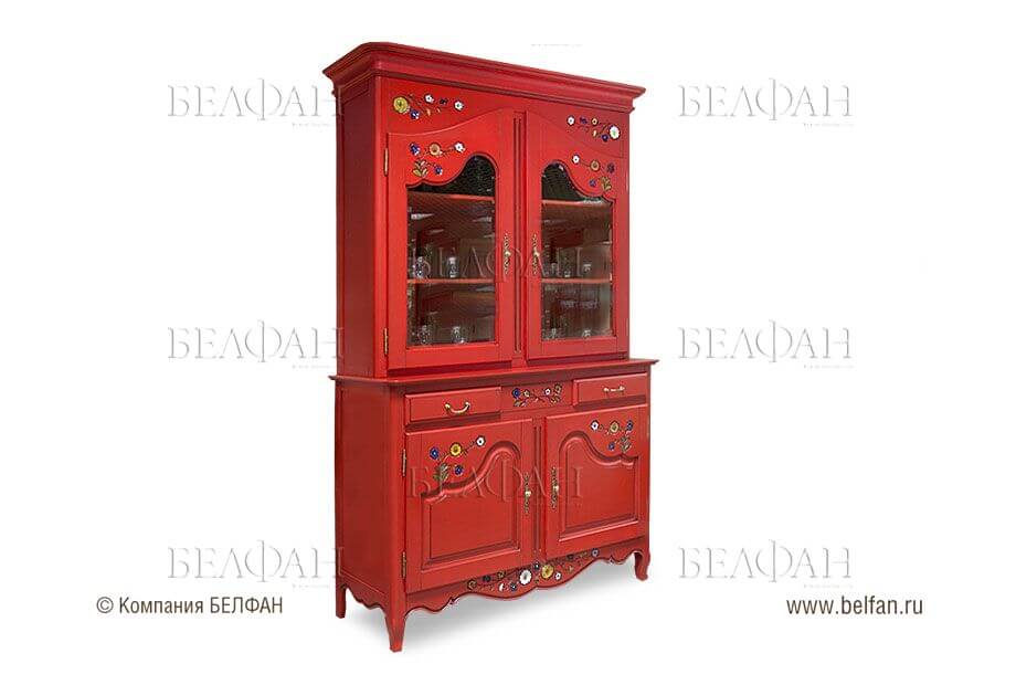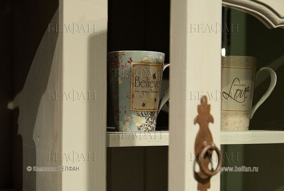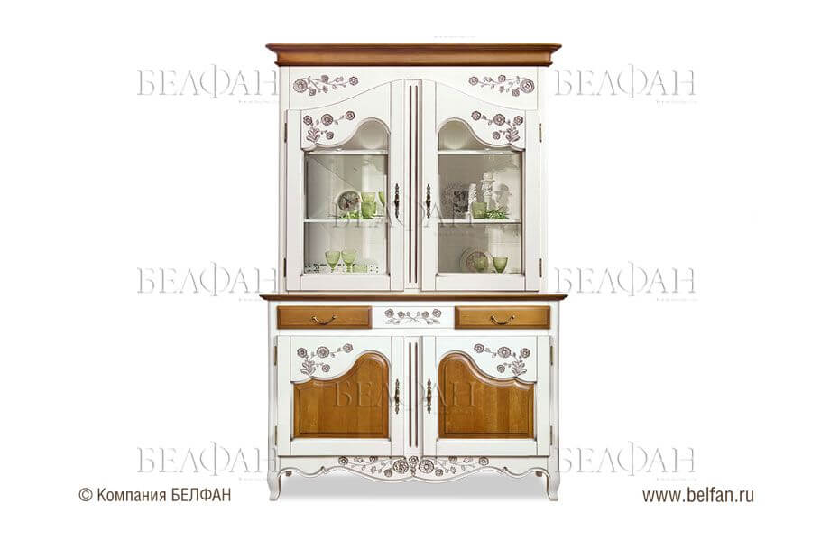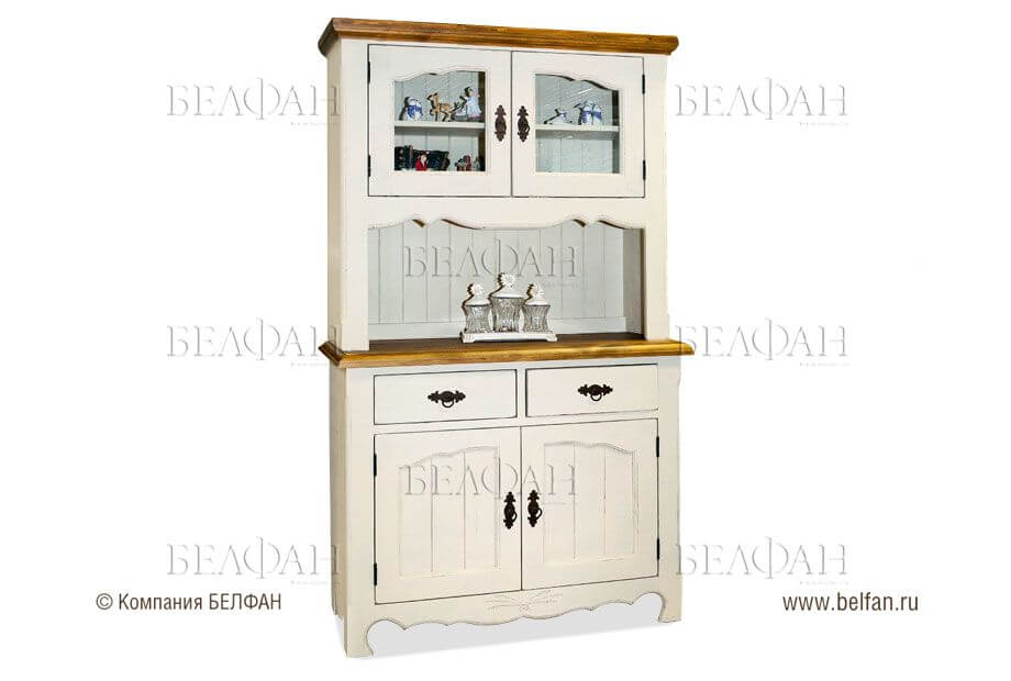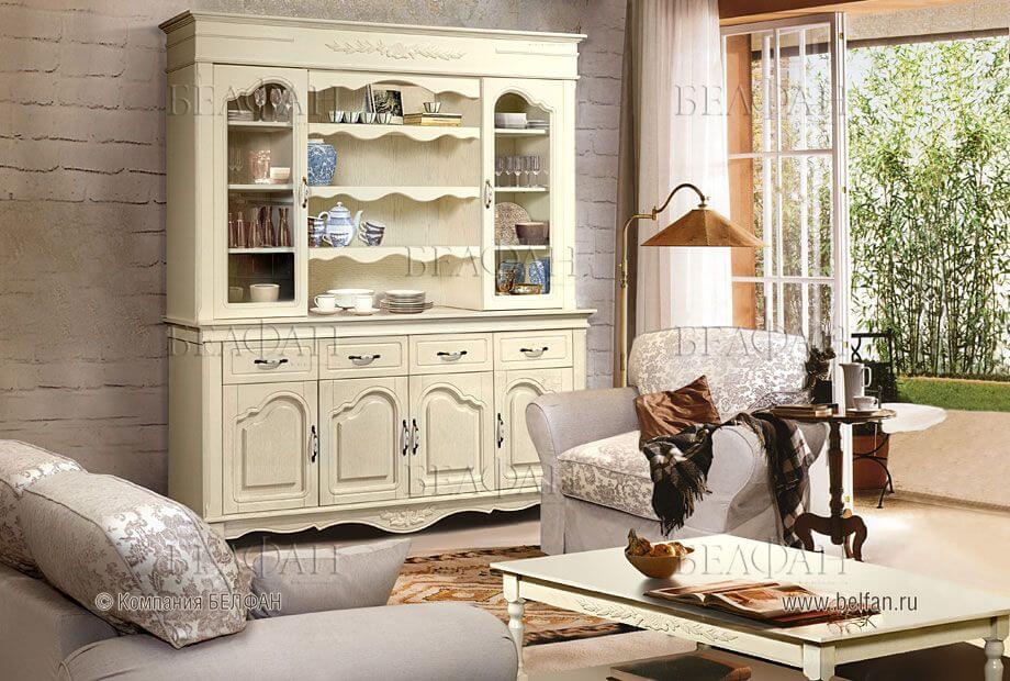 Это направление в настоящее время находится на пике популярности. Мебель в таком стиле напоминает старинную. Она может иметь резные ножки, вензеля, кованые ажурные вставки. Буфет для кухни в стиле прованс может быть открытым, обычно он окрашен в светлые тона. В приоритете оттенки белого цвета или приглушенные пастельные оттенки. Материалом изготовления должно быть дерево, при этом желательно, чтобы оно было искусственно состаренным.