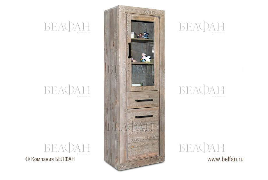 Модель в стиле лофт – по-своему простая и в чем-то даже «грубоватая», она придаст дополнительный акцент вашему дому. В нижней части изделий в данной стилистике часто располагают выдвигающиеся ящики, тогда как верхняя часть – это застекленные полки или специализированные ниши. Такая вместительность позволит свободно размещать кухонные принадлежности, столовую посуду и другие изделия.