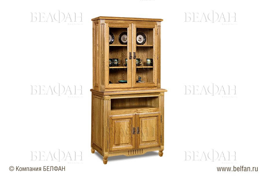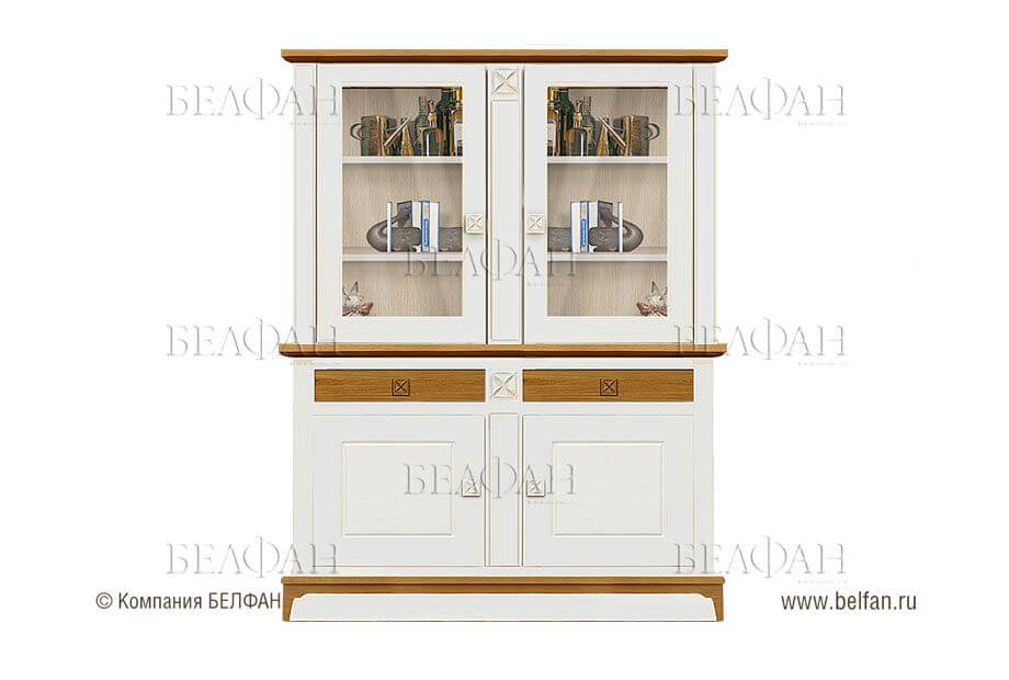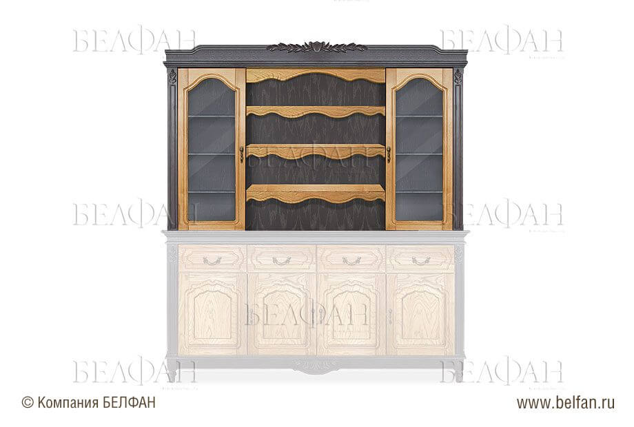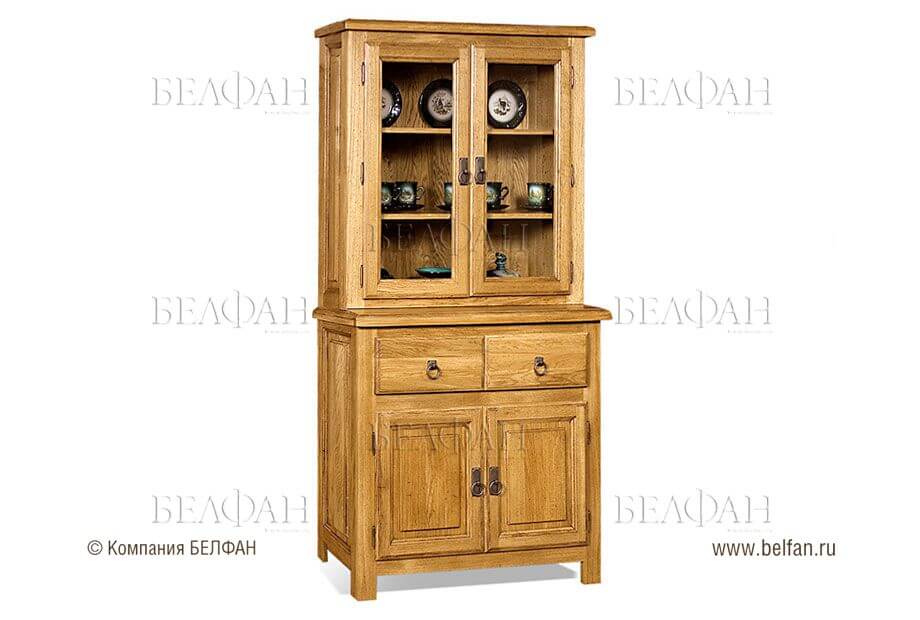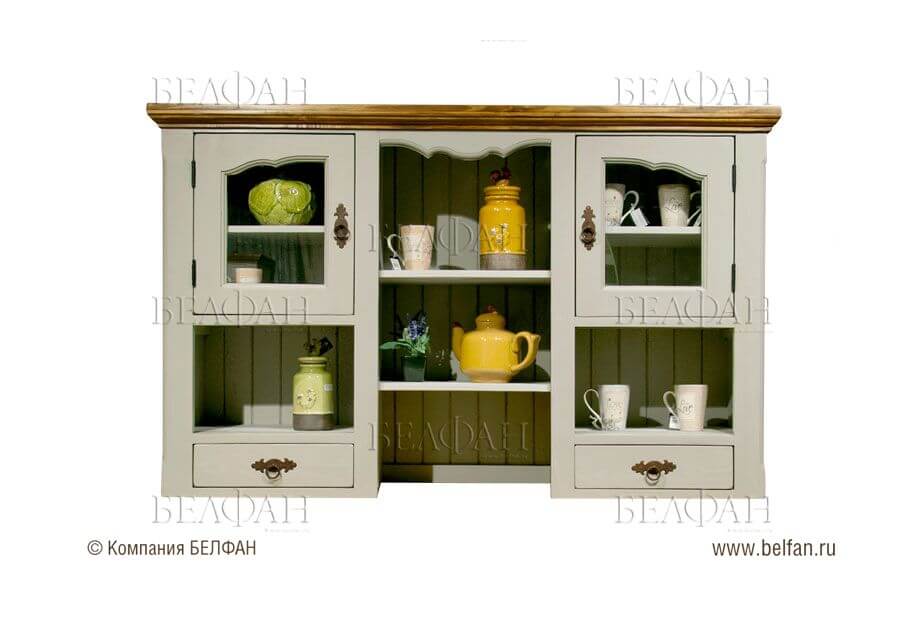 - верхнюю – закрывается, как правило, стеклянными или сплошными дверцами, основная функция которых – защитить посуду от пыли.