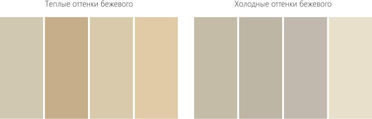 Цветовая палитра бежевого цвета включает в себя более 1000 оттенков. Это как более темные, светло-коричневые тона, так и мягкие кремовые. Можно выбрать теплые или холодные вариации беж. Помимо основного цвета, интерьер всегда включает множество дополнительных, которые нужно правильно скомпоновать.