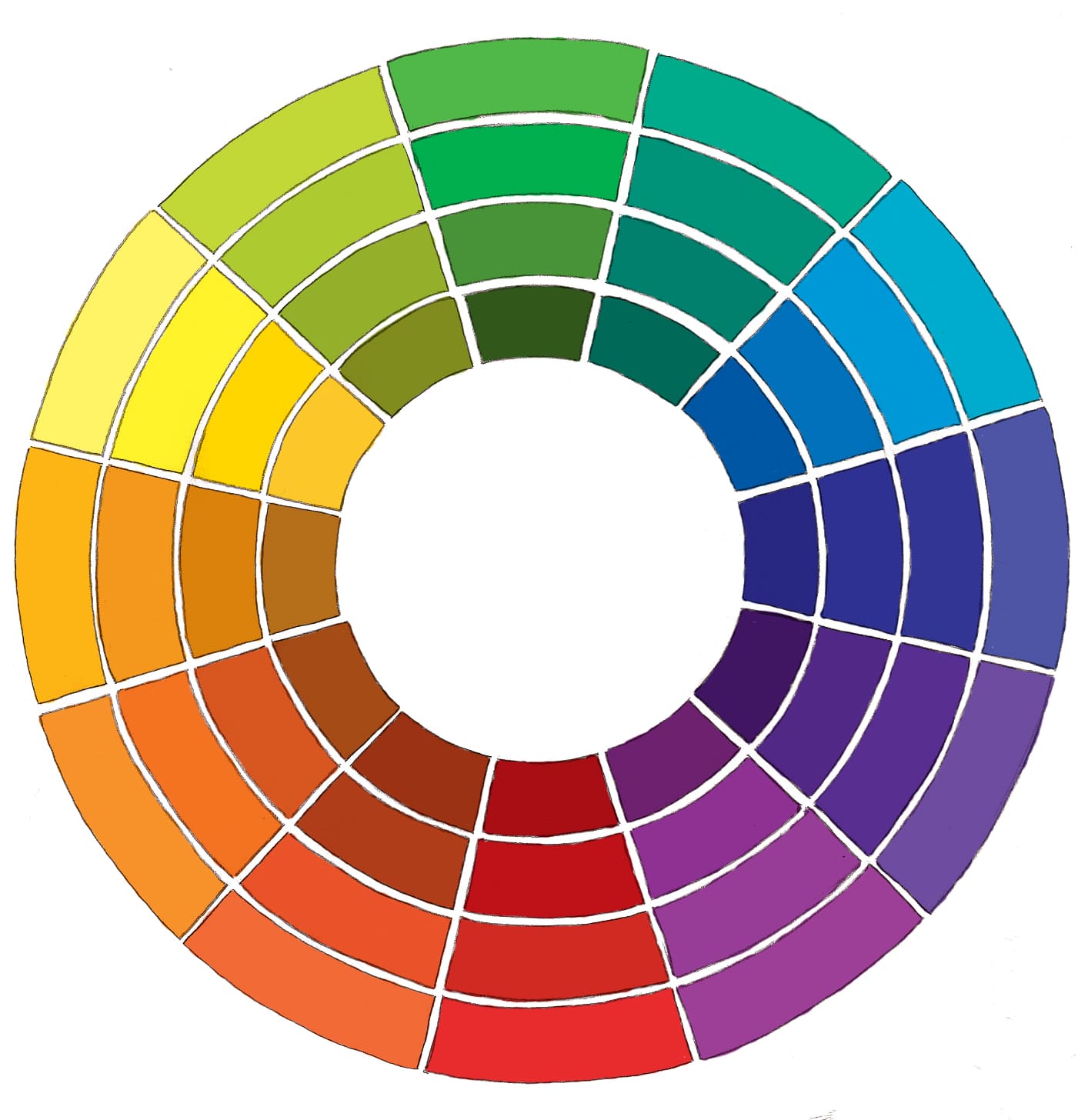 Например, всем нам знакомо сочетание желтого, зеленого и оранжевого. Эти цвета расположены близко в круге, поэтому такая комбинация смотрится максимально гармонично.