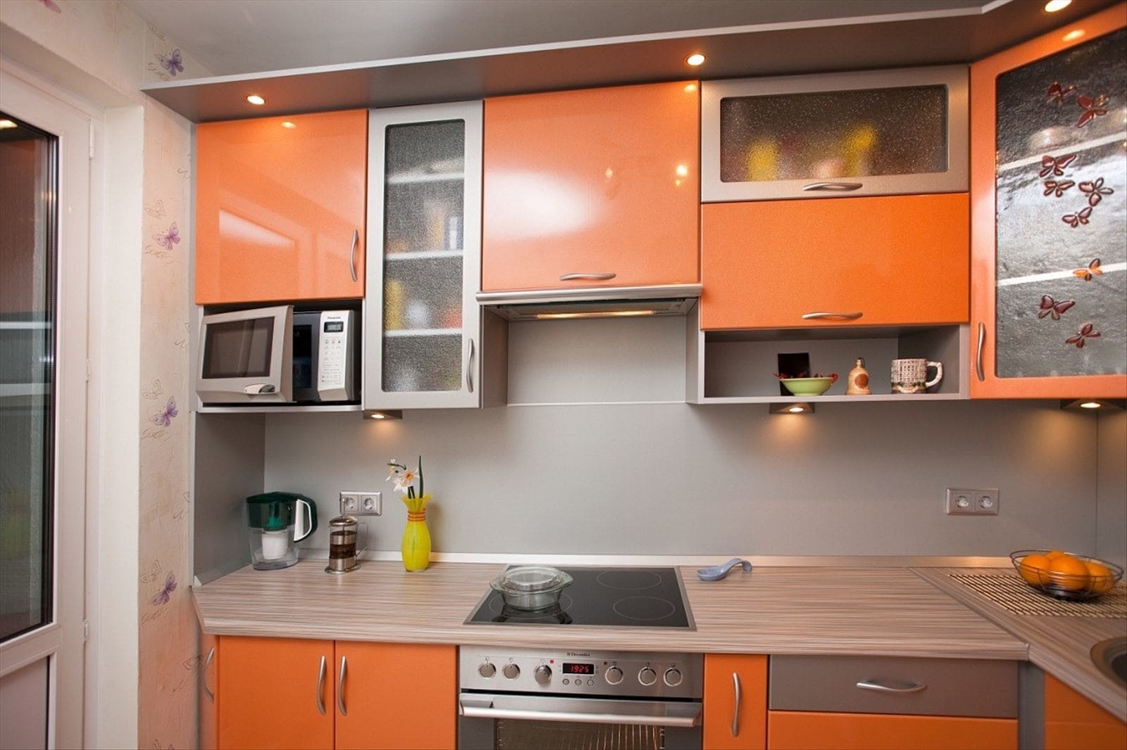 Если окнами в кухне направлены на север, можно искусственно воссоздать ощущение света и тепла. Используйте много белого, а также других теплых оттенков – желтого, красного, оранжевого, розового.