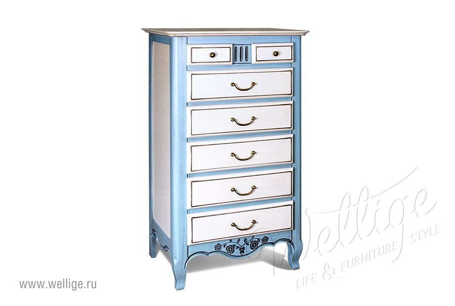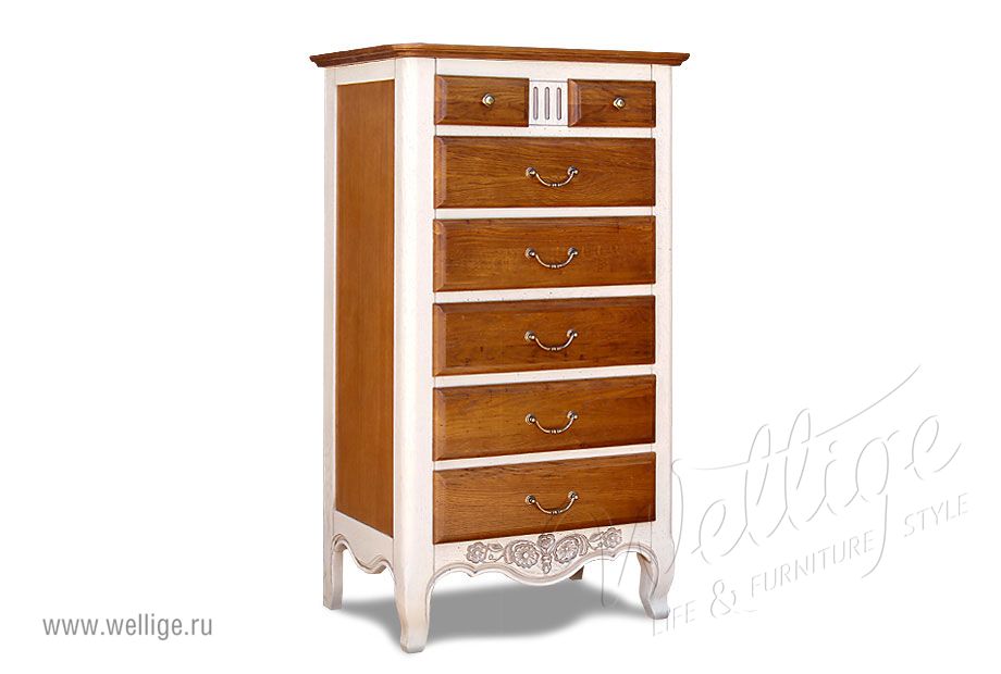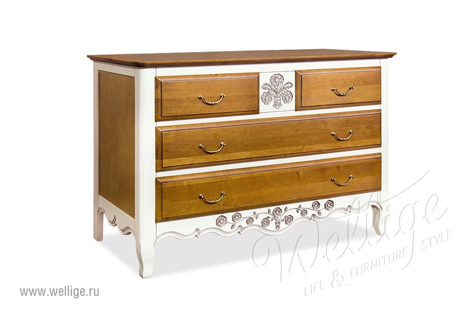 Комод является главным предметом мебели в данном направлении. Его основными характеристиками являются пастельные тона и естественная фактура. Однако он может быть дополнен и не очень яркими, но насыщенными акцентами. Комод в стиле прованс обычно имеет изогнутые ножки, украшенные резьбой, и округлые углы.