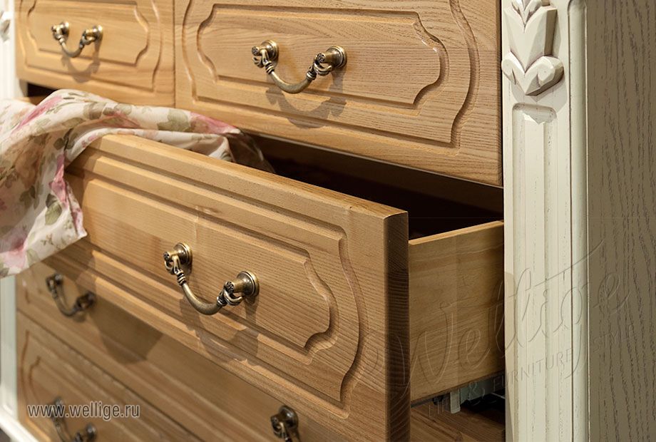Для того чтобы изделие прослужило как можно дольше, особое внимание нужно уделить качеству направляющих ящиков. Если комод в стиле прованс должен выглядеть состаренным, то направляющие могут быть современными и новыми. Лучше, если они будут установлены на дно ящика в «скрытом» виде. Это позволит снизить риск его перекоса и выпадения.