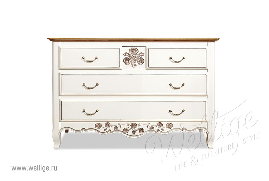 Комод является главным предметом мебели в данном направлении. Его основными характеристиками являются пастельные тона и естественная фактура. Однако он может быть дополнен и не очень яркими, но насыщенными акцентами. Комод в стиле прованс обычно имеет изогнутые ножки, украшенные резьбой, и округлые углы.