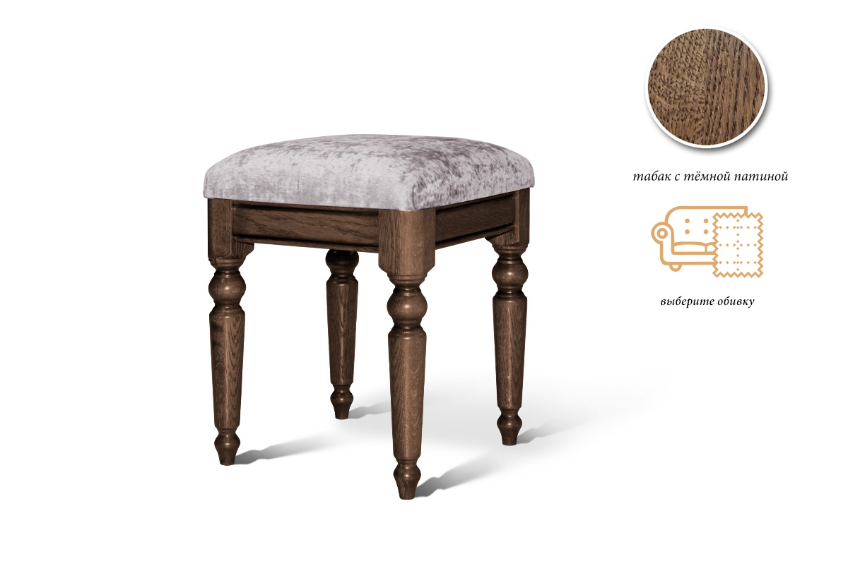Если вы остановились на классике в оформлении своего интерьера, то компактная банкетка из коллекции «Лика» (Lika) станет прекрасной альтернативой обычным стульям. Ее основа и легкие точеные ножки выполнены из массива дуба, в цвете «табак с тёмной патиной». Мягкий элемент отделан приятной на ощупь тканью.