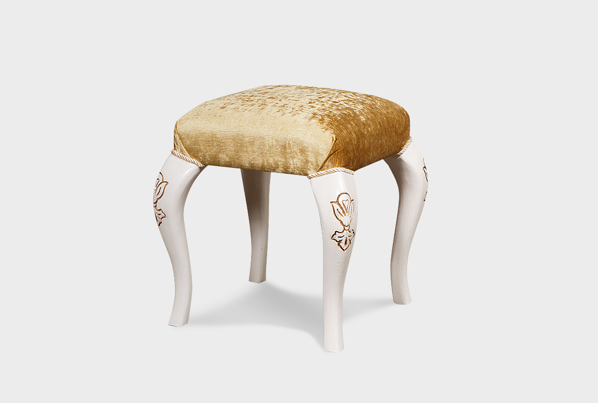 Особенности банкетки «Трио» в цвете «белая эмаль с золотой патиной» с тканью «И-25»: