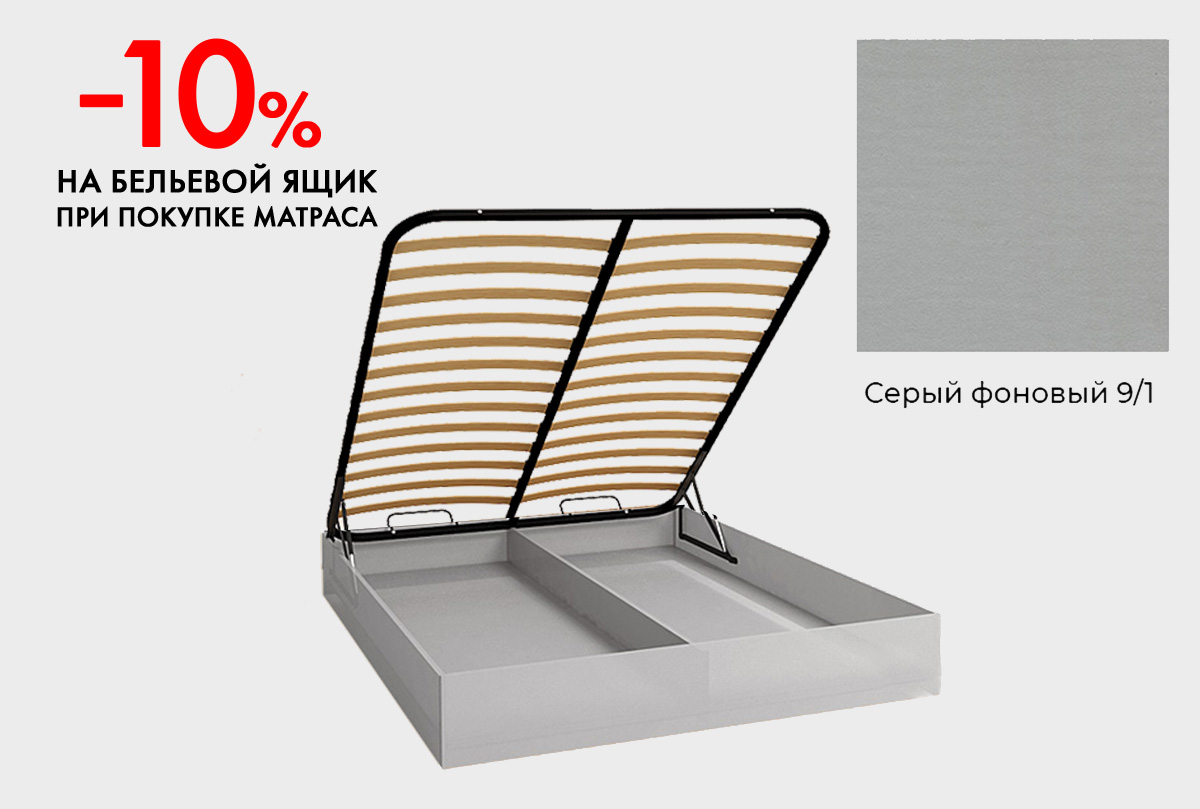 Угол открывания подъёмного механизма 36 градусов. Функционален, практичен и, с экономической стороны, полностью оправдывает вложения. Изготавливается в различных цветах. Размер ортопедической решетки по длине: 1950 мм, высота ящика – 330 мм. Ящик устанавливается на пол (дополнительно может крепиться к спинке и царгам кровати). Подъемный механизм данного бельевого ящика комплектуется двумя газлифтами, которые позволяют поднимать основание. Мощность одного подъемного механизма составляет 500 - 1150 Ньютонов (в зависимость от размера спального места), что соответствует весу в 51 - 104 кг. Ортопедическая решетка является разборной.