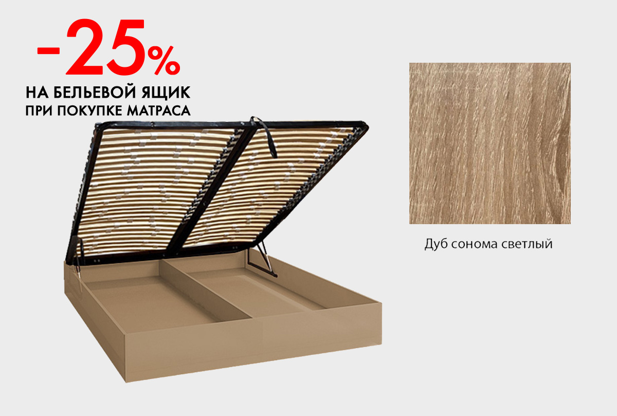 Бельевой ящик – изделие универсальное и может устанавливаться в кровати следующих коллекций: «Берген А» (с балдахином), «Уоллстрит» (кроме кровати без изголовья), «Чикаго», «Норд», «Оливия», «Тэфи», «Сакраменто», «Трио», «Катрин», «Рауна». Получается вместительный и удобный «шкаф» под кроватью для хранения разных сезонных вещей: чемоданы, детcкие игрушки, запасные одеяла и многое другое. Не занимает места, позволяет получить доступ к вещам, так как легко подымается.