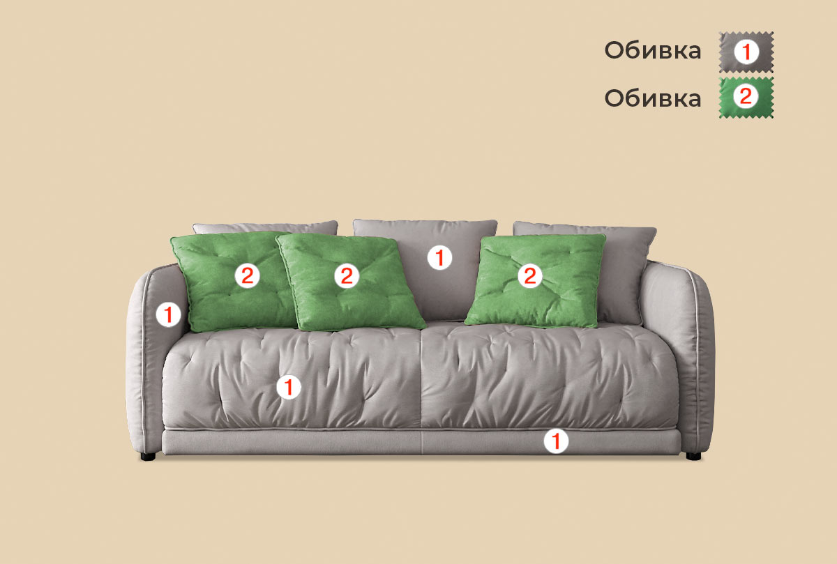 ✅ Наполнние подушек спинки и декоративных подушек – наполнитель синтетическое волокно (синтепух).