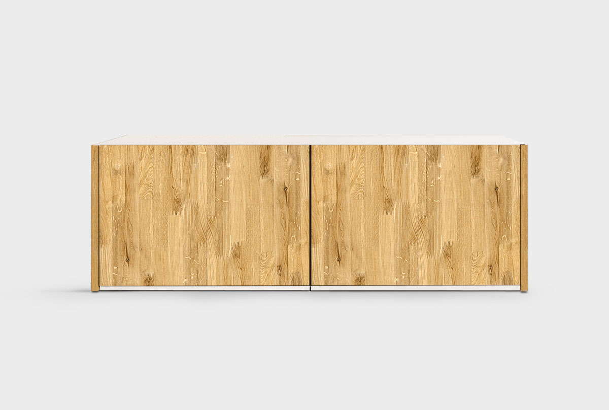 Дополнительная секция для двухдверного шкафа для одежды Уоллстрит в цвете «к-бейц-масло, ф-бейц-масло, вн-белый» с сочетанием текстуры натурального дерева и акцентных вставок. Дополнительная секция (антресоль) отлично подходит для сезонных вещей, постельного белья или других предметов, для которых никогда не хватает места в обычном шкафу. Высокий шкаф в потолок – это разумное и функциональное использование пространства!