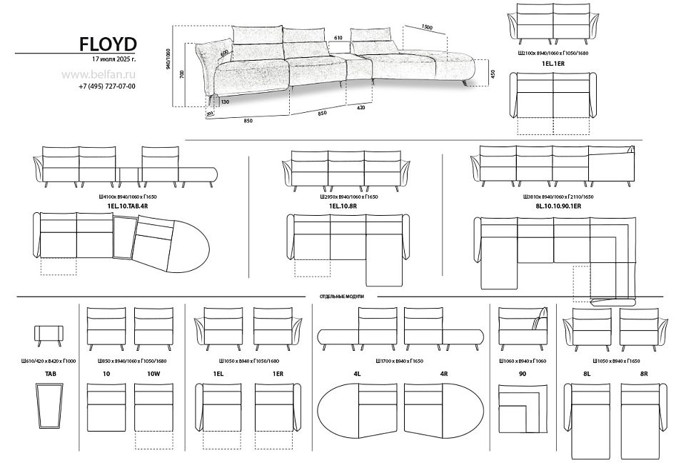 Особенности трехмодульного дивана «Флойд»