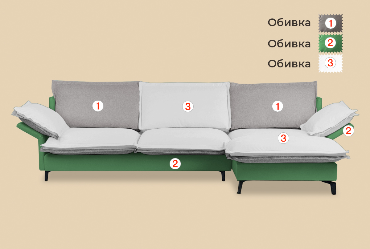 ✅ Двухстороннее цветовое решение чехлов подушек, позволяет комбинировать 3 вида обивки в одном изделии и создать свой уникальный дизайн.