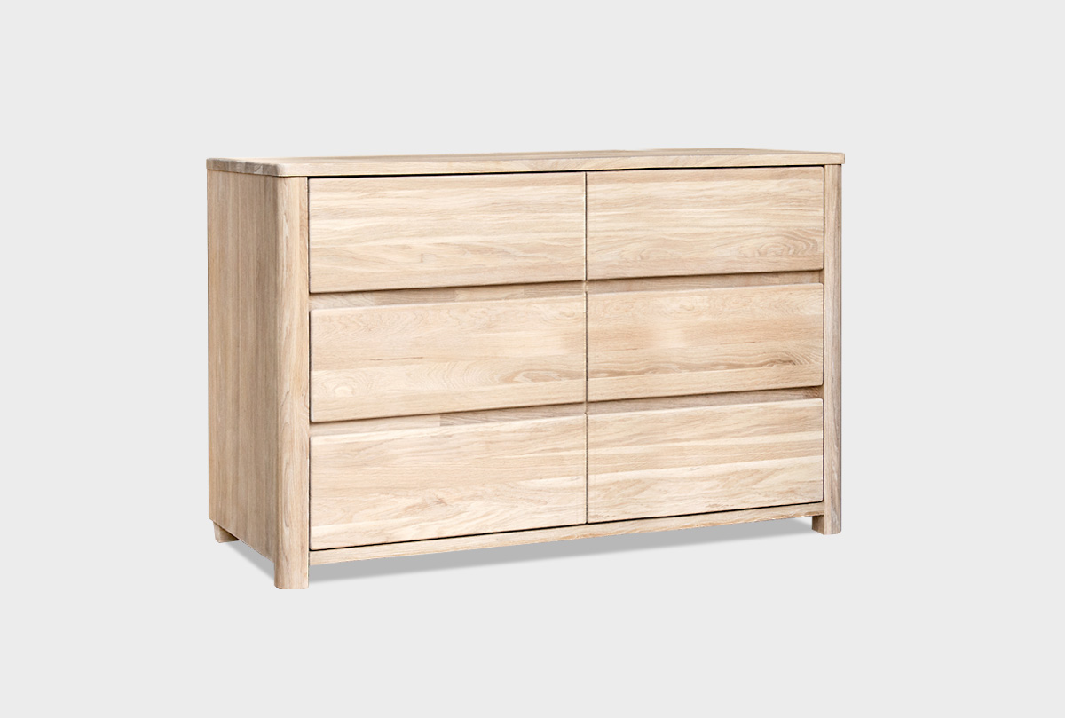 Вместительный двухсекционный комод «Норд» (Nord) в цвете «белёный дуб» с шестью ящиками для Вашей спальни.