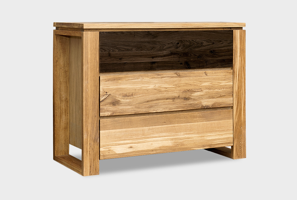 Комод «Берген» В-3 в цвете «бейц-масло, графит», выполненный в традиционном стиле Loft, не перенасыщен декором, а наоборот – содержит минимум декоративных элементов. При всем этом он самобытен и очень удобен: его вместительные ящики для одежды и белья оснащены надежными направляющими полного выдвижения. Такая конструкция позволит легко отыскать любую мелочь даже в глубине ящика. Светлый, будто акварельный оттенок дуба, создаст в помещении атмосферу упорядоченности и спокойствия. А покрытие натурального дерева исключительно бейц-маслом придаст вам уверенности в том, что для себя и своих близких вы выбираете только самое лучшее!