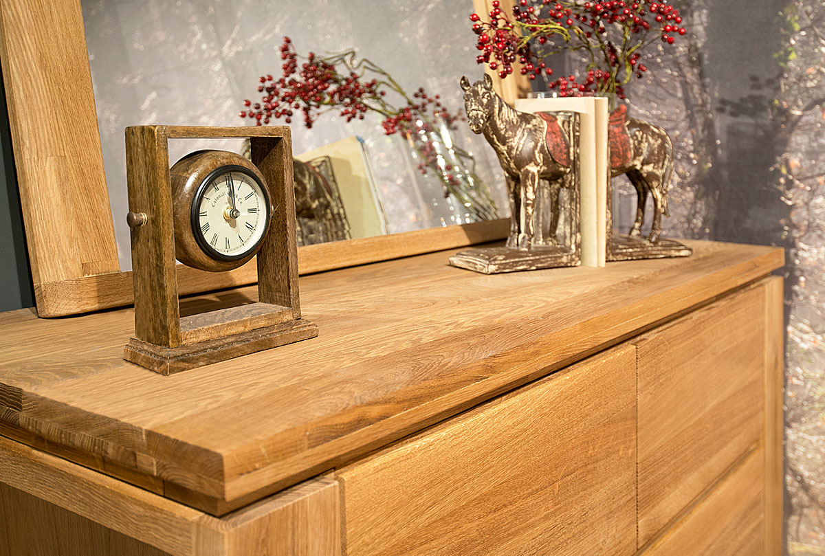 Мебель из массива, обработанная натуральными маслами и воском, выглядит очень привлекательно и колоритно, но, в свою очередь, требует к себе особого отношения. На фабрике натуральные масла наносят тонким слоем (с небольшим избытком) на поверхность мебели. После высыхания масло образует тончайшую пленку из высококачественного пчелиного воска.