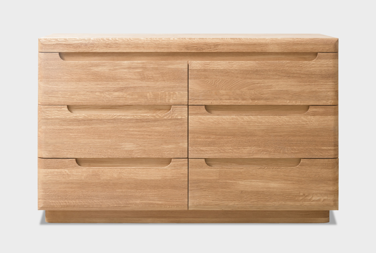 Этот комод органично вписывается в современную спальню. Его стиль универсален, но не безликий — выразительная древесина с характером делает каждый экземпляр уникальным. Особенно эффектно выглядит в ансамбле с кроватью, шкафом и прикроватными тумбами из той же коллекции.
