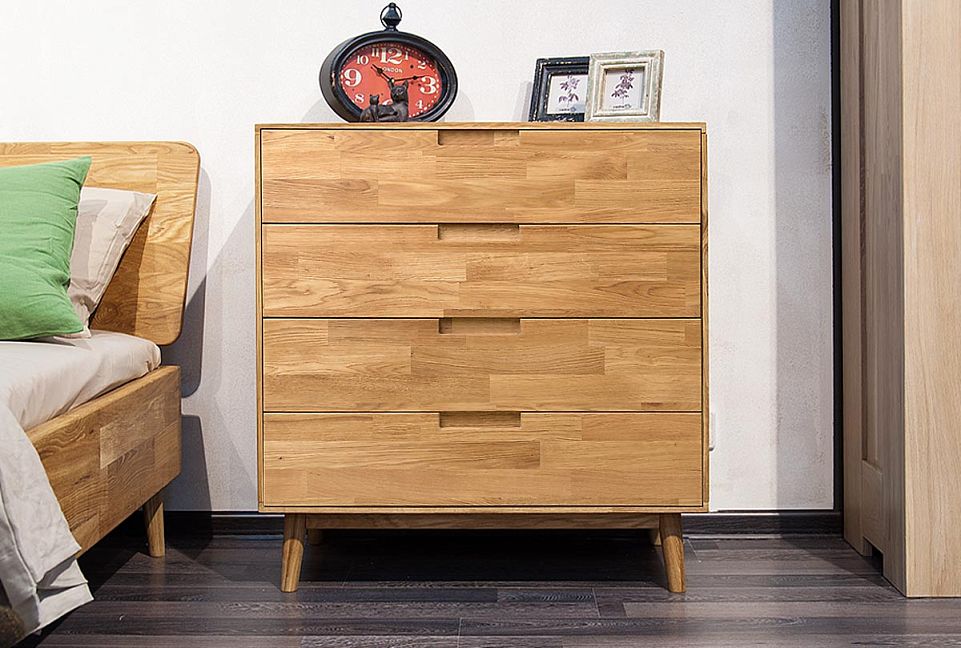 ✅ Комод оснащён четырьмя вместительными ящиками на надёжных направляющих, идеально подходит для хранения одежды, белья или текстиля.