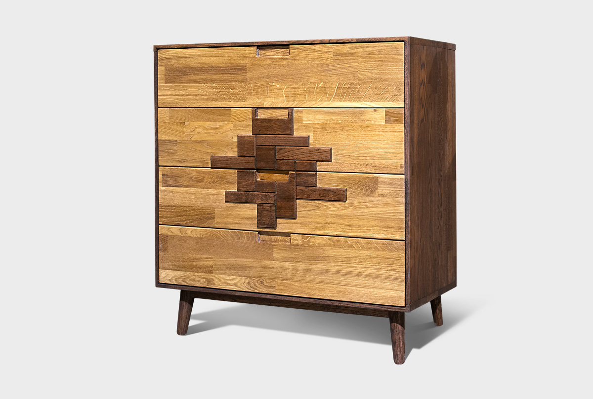 Комод из массива дуба «Ирвинг Дизайн» 1 в цвете «графит, бейц-масло», 4 вместительных ящика, стиль Лофт.