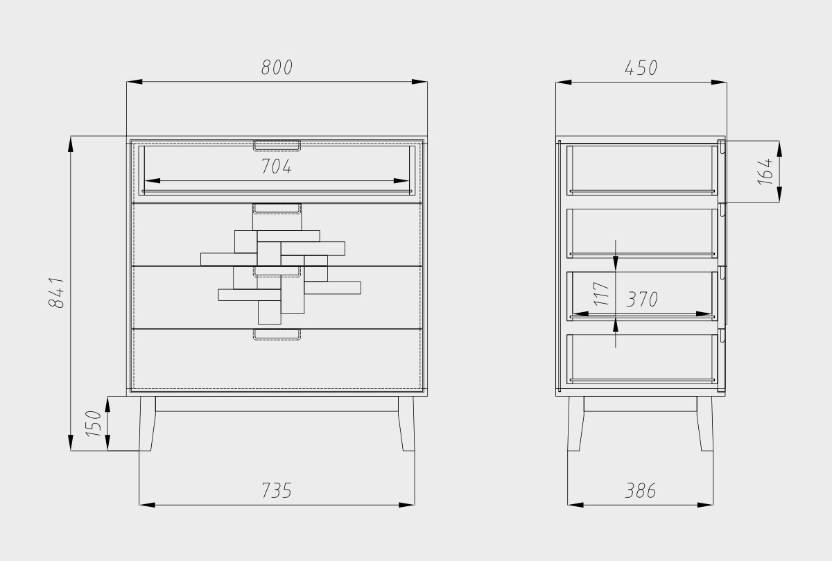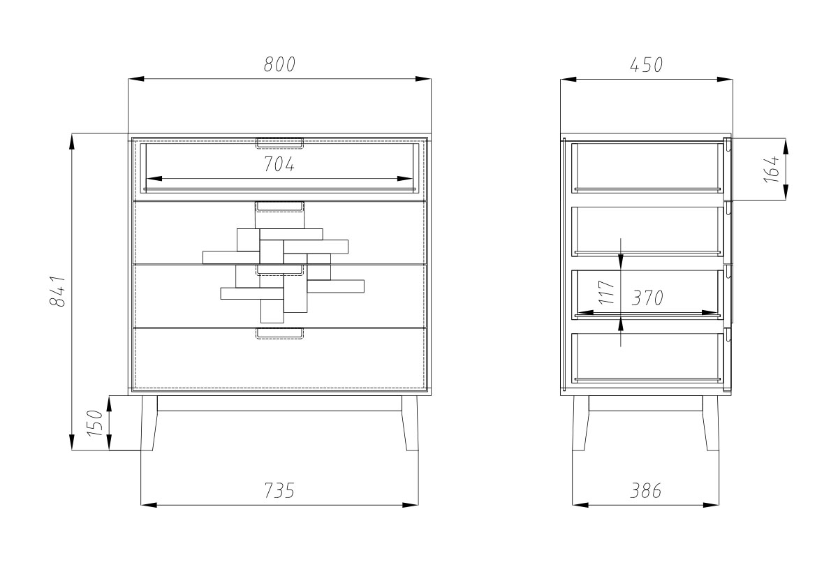 Комод "Ирвинг Дизайн" 1, графит, бейц-масло, 4 ящика, (.Г000034059)