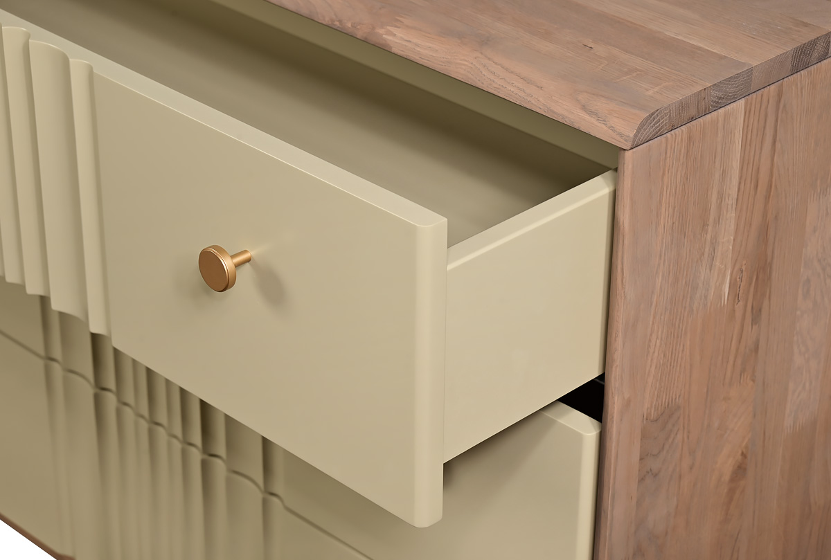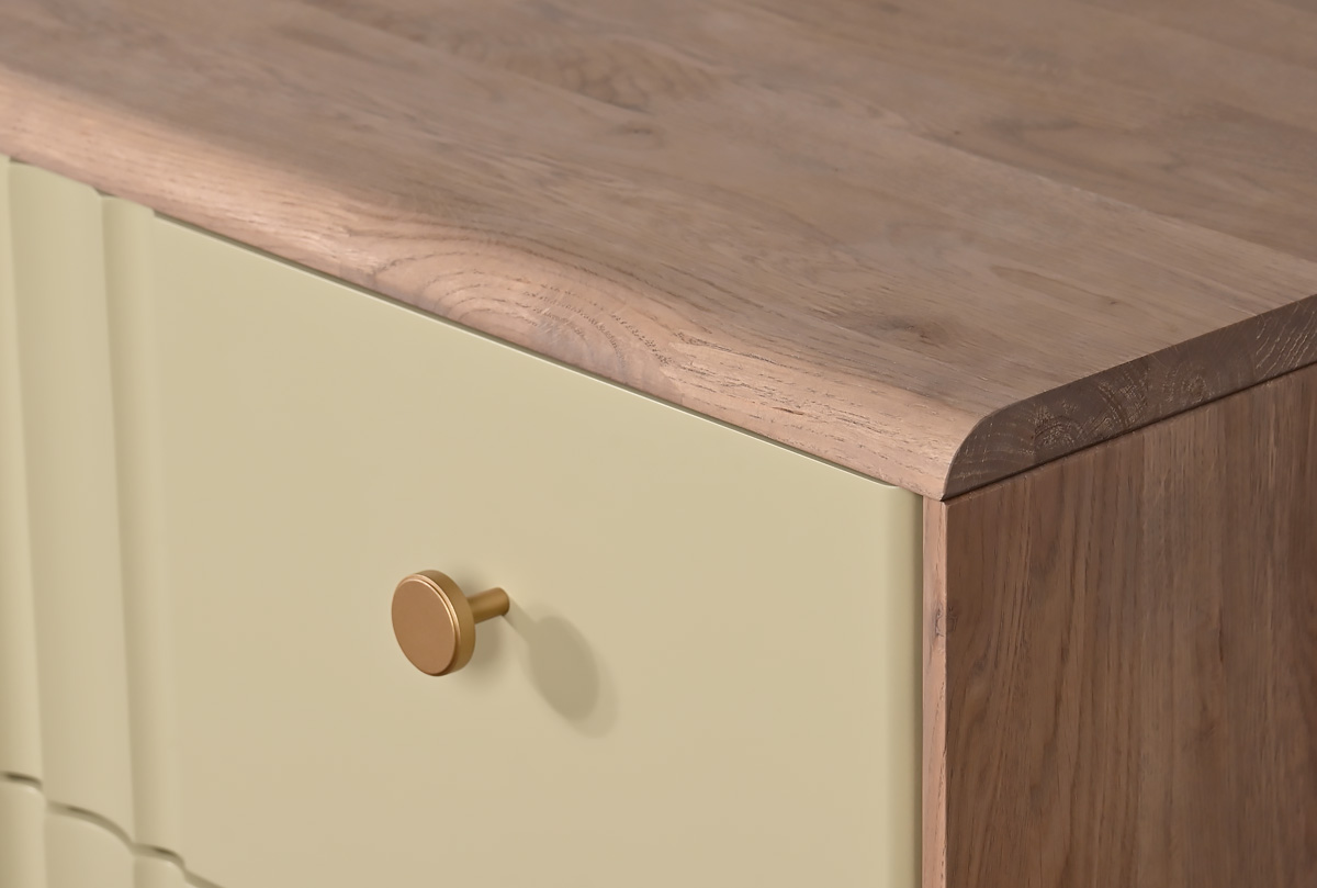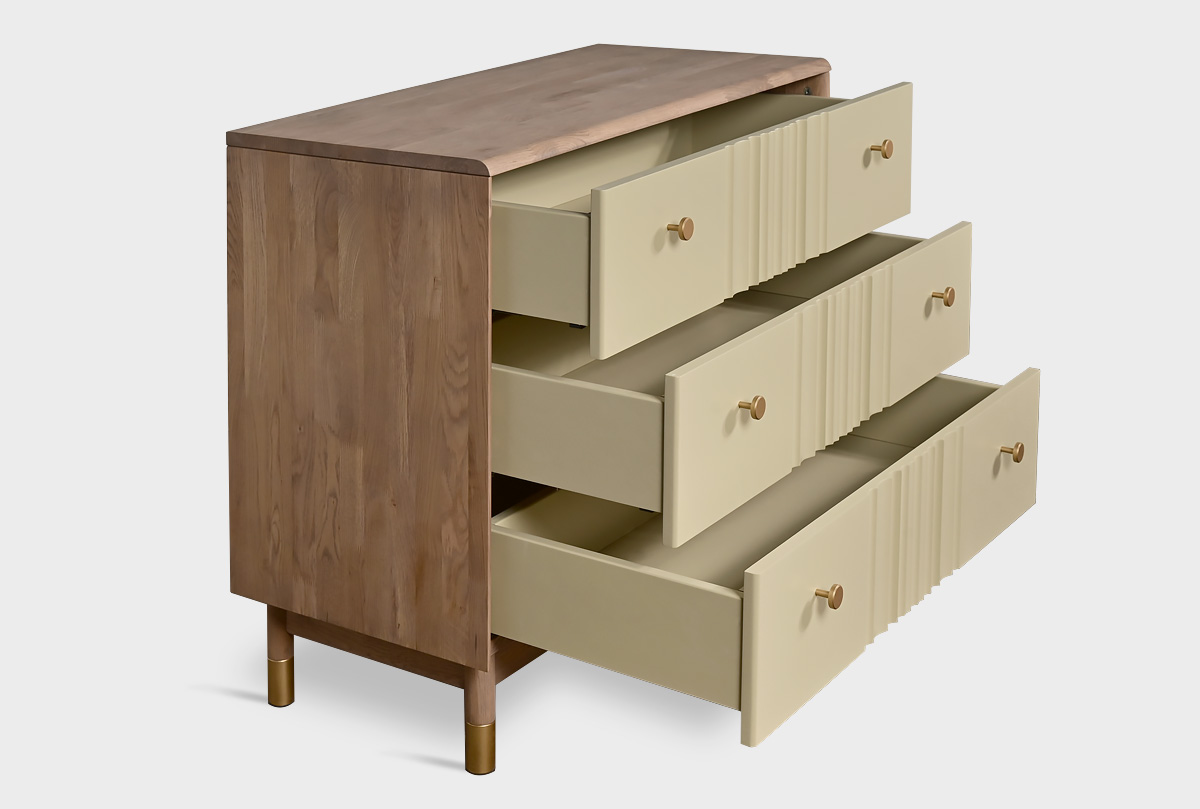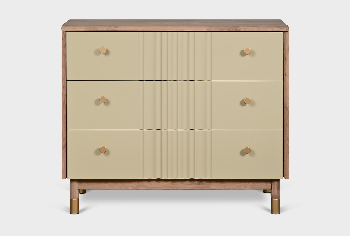 Комод «Меридиан» 3 — компактный, но выразительный элемент, который сочетает в себе продуманную эргономику и скульптурную выразительность. Его три вместительных ящика создают аккуратный ритм, подчёркнутый мягкими волнами фасадов.