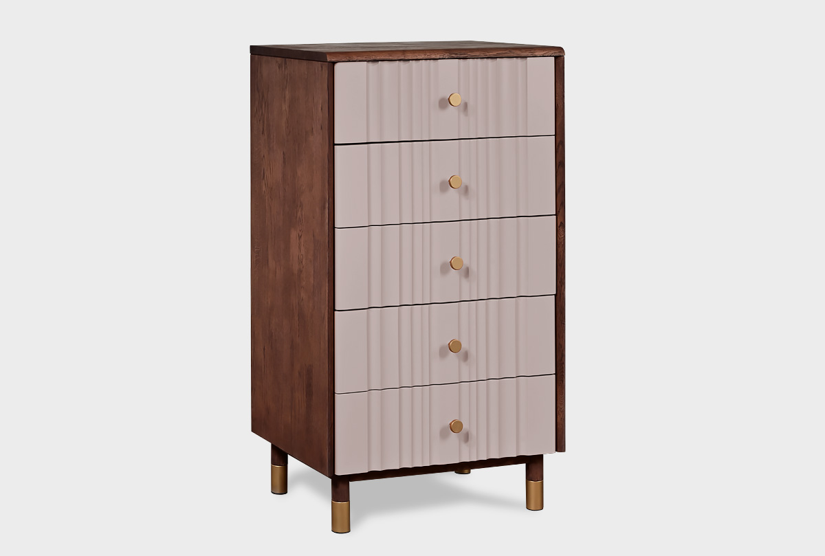 Комод «Меридиан» 5 (высокий) — это утончённое решение для компактного и элегантного хранения. Вертикальная композиция из пяти ящиков делает его визуально лёгким, но при этом вместительным и функциональным.