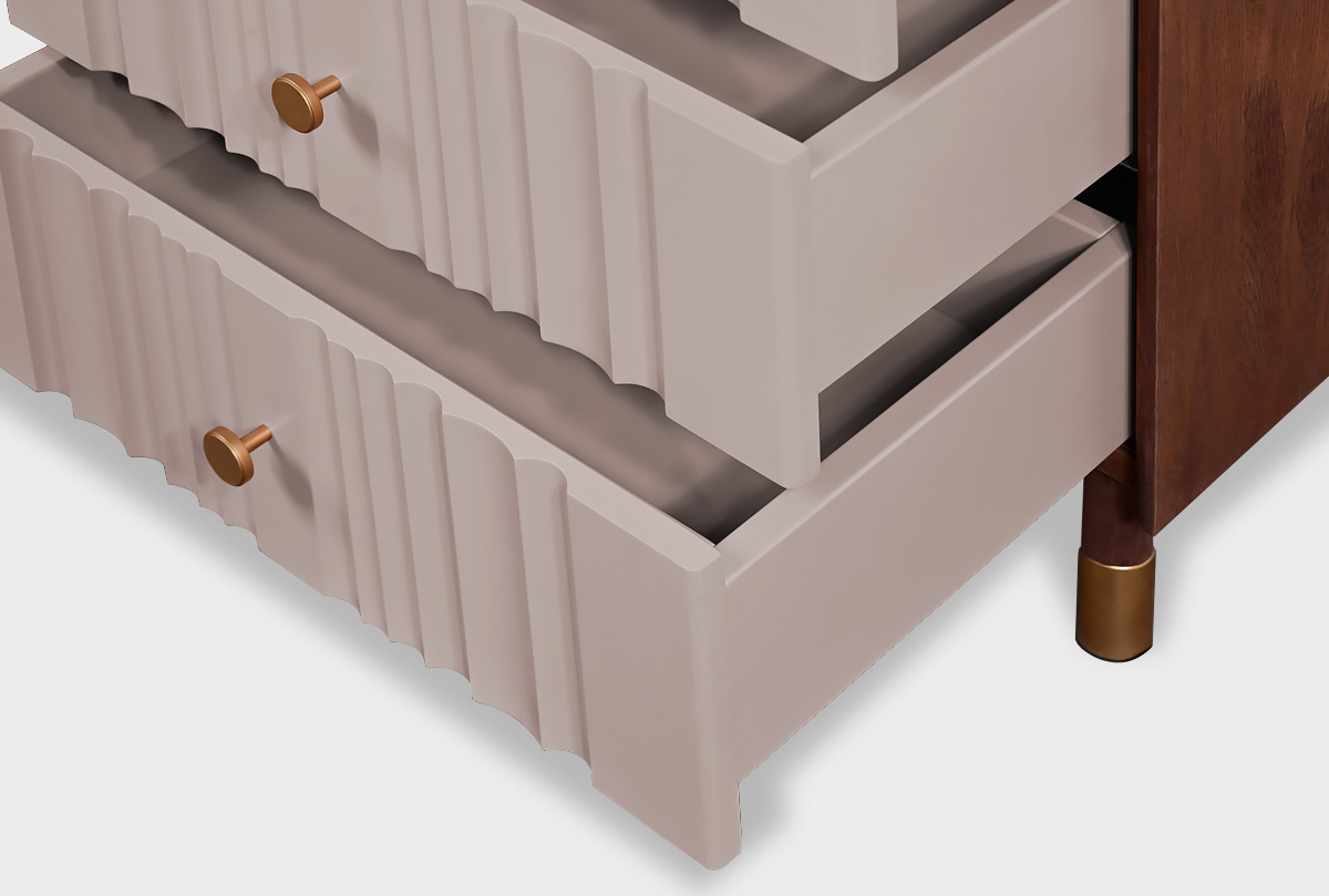 Вдохновлённая движением атласной ткани, коллекция «Меридиан» — это воплощение артистичного подхода к современному интерьеру. Лёгкость форм, графичные волны фрезеровки, высокие ножки и позолоченные акценты делают каждый предмет в коллекции изысканным, но не вычурным. Он будто создан для тех, кто умеет ценить детали и стремится окружить себя эстетикой каждый день.