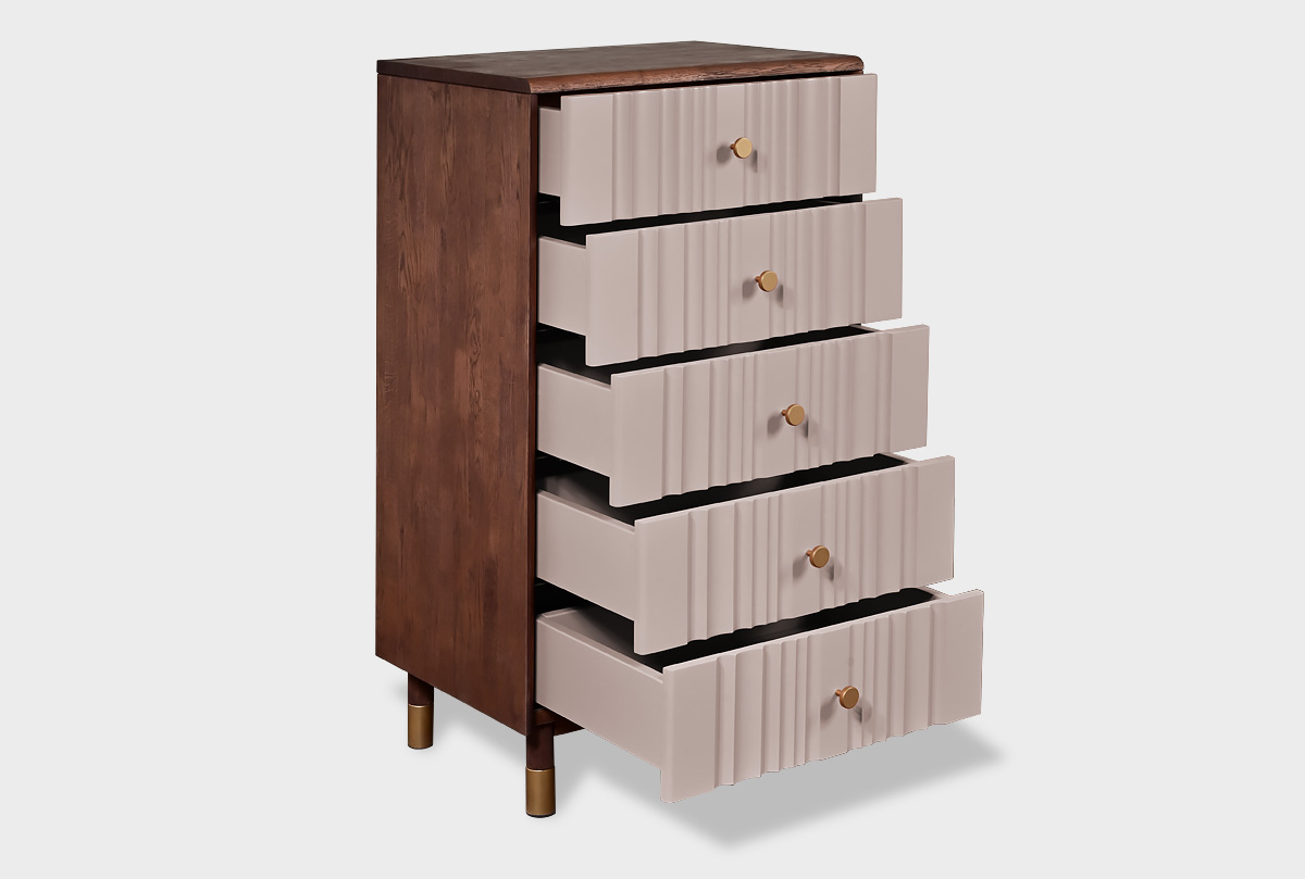 Комод «Меридиан» 5 (высокий) — это утончённое решение для компактного и элегантного хранения. Вертикальная композиция из пяти ящиков делает его визуально лёгким, но при этом вместительным и функциональным.