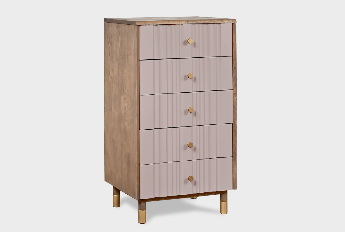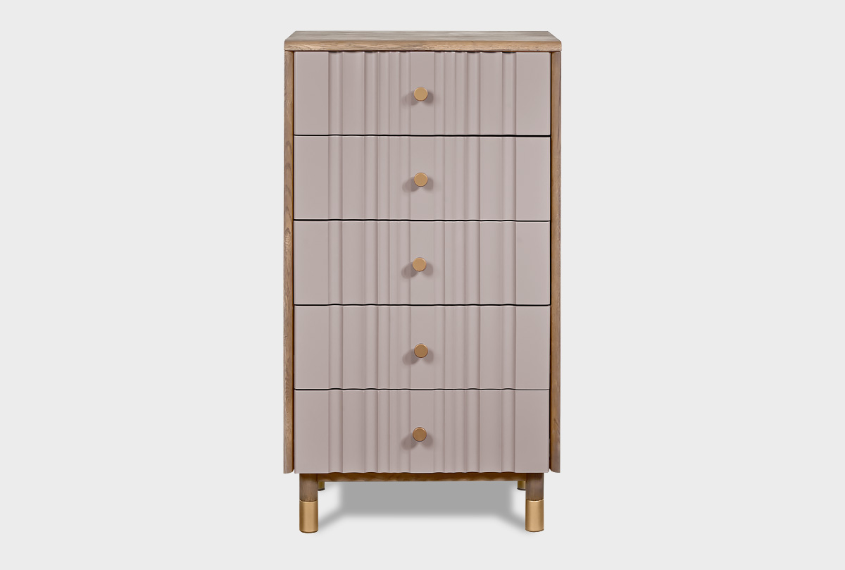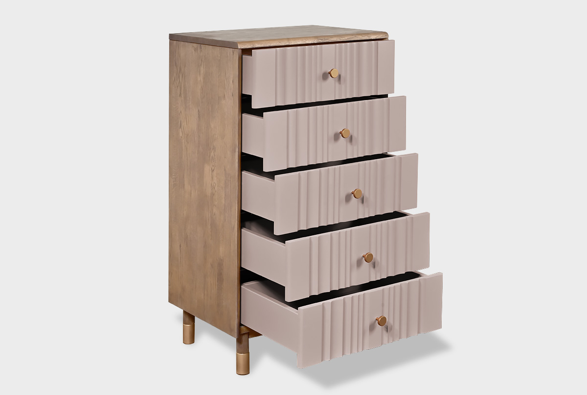 Комод «Меридиан» 5 (высокий) — это утончённое решение для компактного и элегантного хранения. Вертикальная композиция из пяти ящиков делает его визуально лёгким, но при этом вместительным и функциональным.