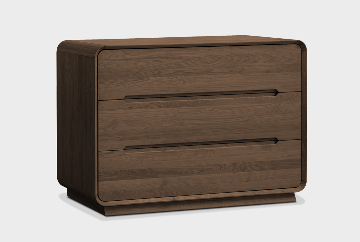 Комод «Монблан» 3 в цвете «графит» станет незаменимым элементом организации пространства спальни или гостиной. Его мягкие закруглённые контуры и утопленные фасады с графическими профиль-нишами подчеркивают минималистичную элегантность и современный стиль.