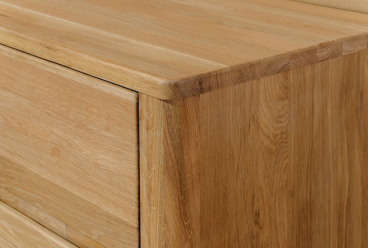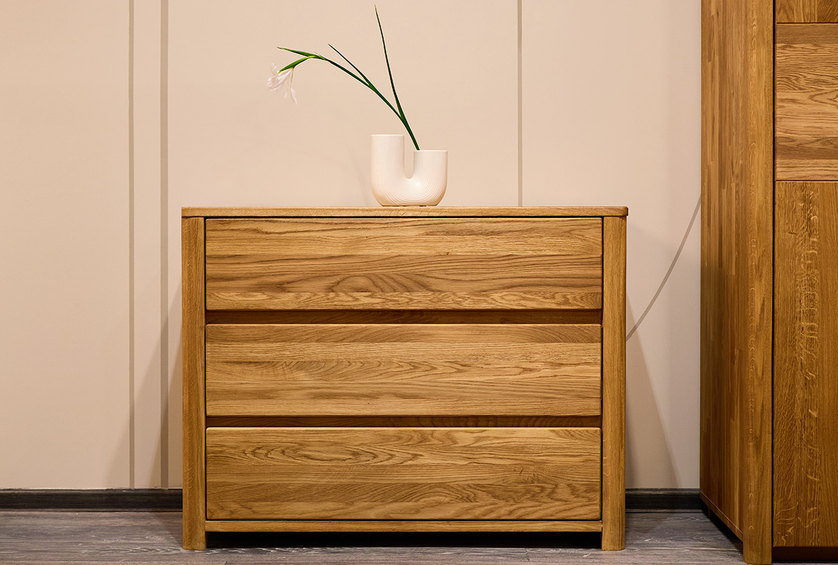 Стиль Лофт, в котором выполнен комод «Норд» в цвете «бейц-масло» – это натуральные материалы и национальное своеобразие. Минималистические фасады комода, которые лишены ручек, находятся на пике мебельной моды. Зато выдвижные ящики могут похвастаться оригинальными и практичными профиль-нишами – специальными выемками на краях для максимально удобного открывания. А направляющие с доводчиками производства Германия обеспечат плотное и бесшумное закрывание ящиков.