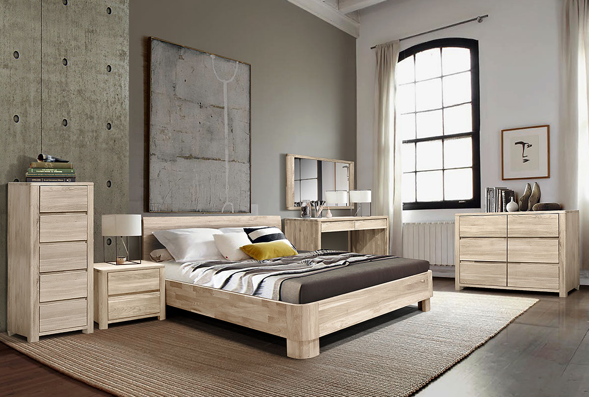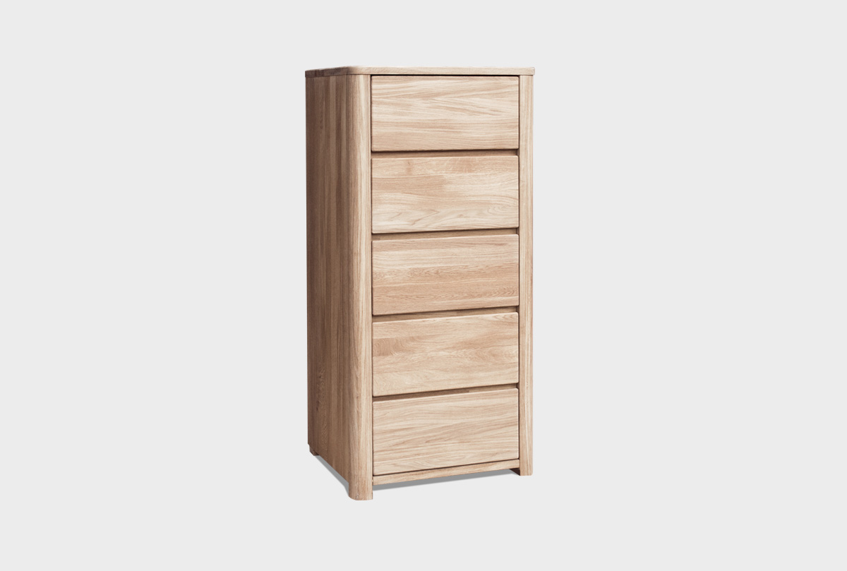 Высокий комод «Норд» (Nord) в цвете «белёный дуб» из массива дуба для Вашей спальни.
