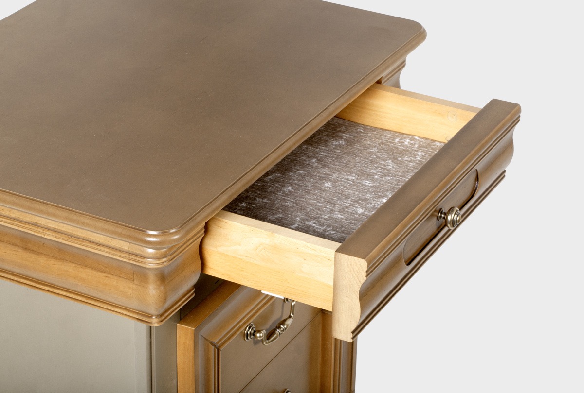 ✅ В ящиках для деликатных вещей дно отделано велюром. Цвет ткани может разниться в зависимости от изделия.