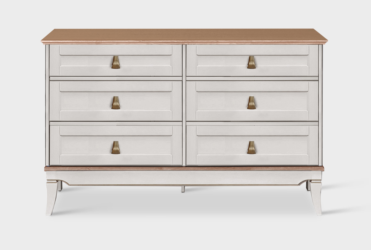 Комод «Стюарт» с шестью ящиками в классическом стиле для Вашей спальни, в цвете "персидский жемчуг, натуральный дуб".