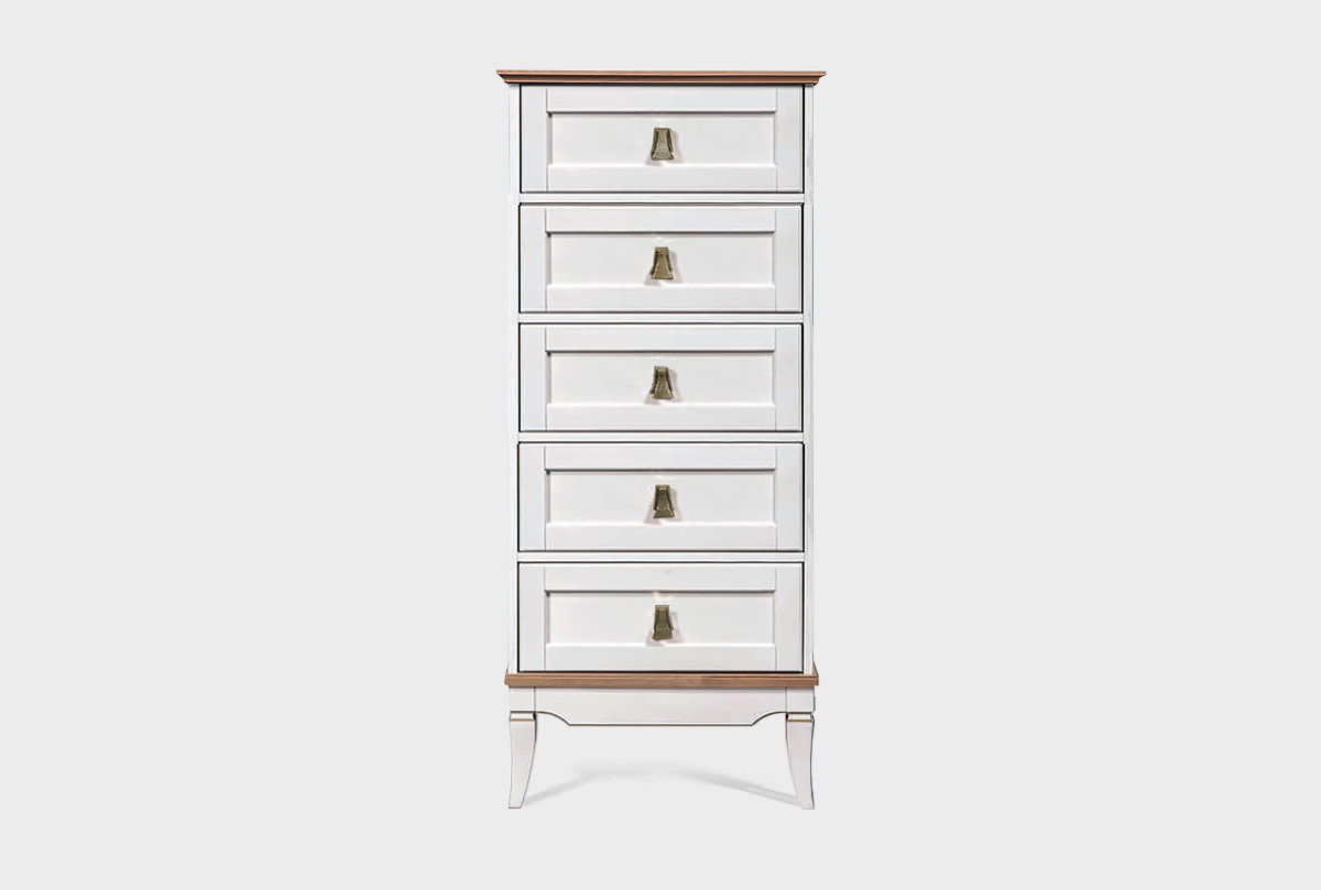 Высокий комод "Стюарт" в классическом стиле, в цвете " дуб белый, натуральный дуб " для Вашей спальни.