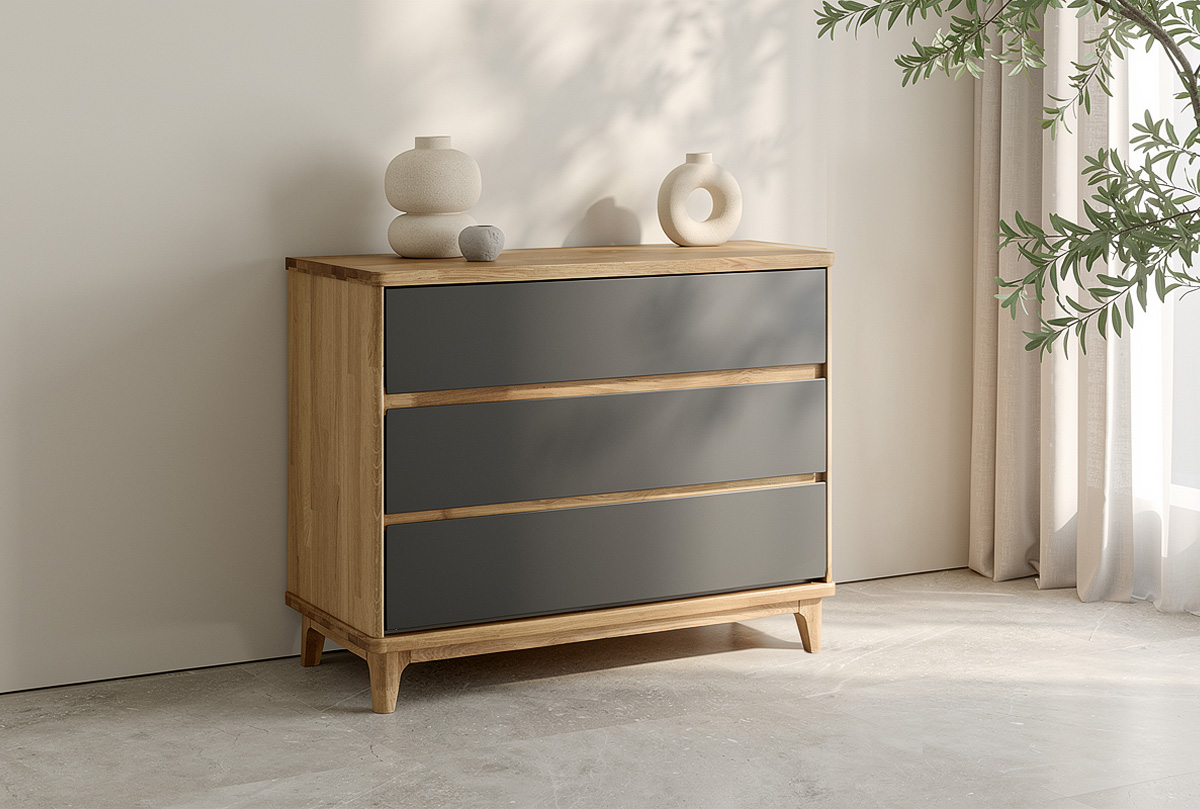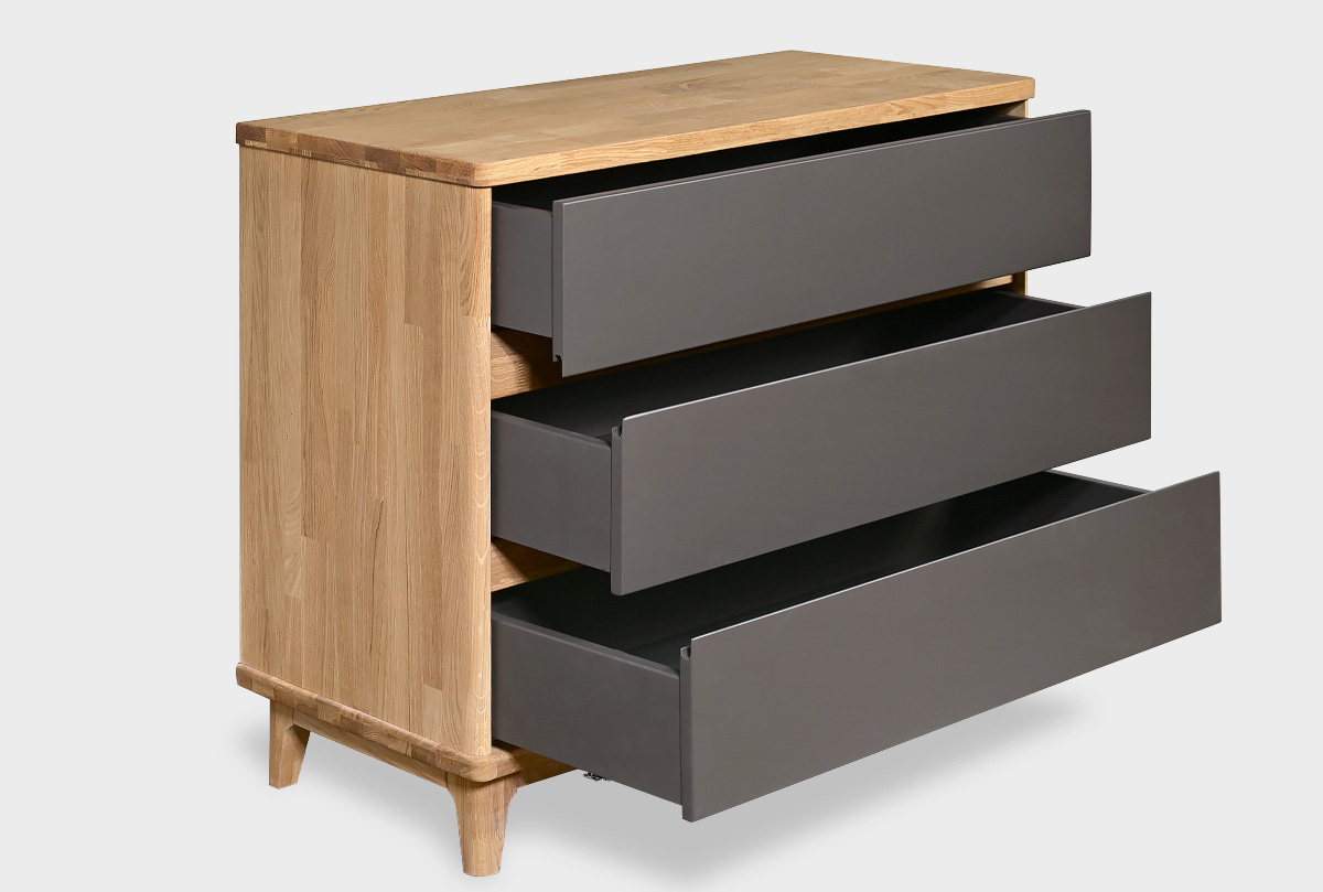 ✅ Комод изготовлен из комбинации материалов - массива дуба и эмали. Из массива дерева изготовлен корпус комода.