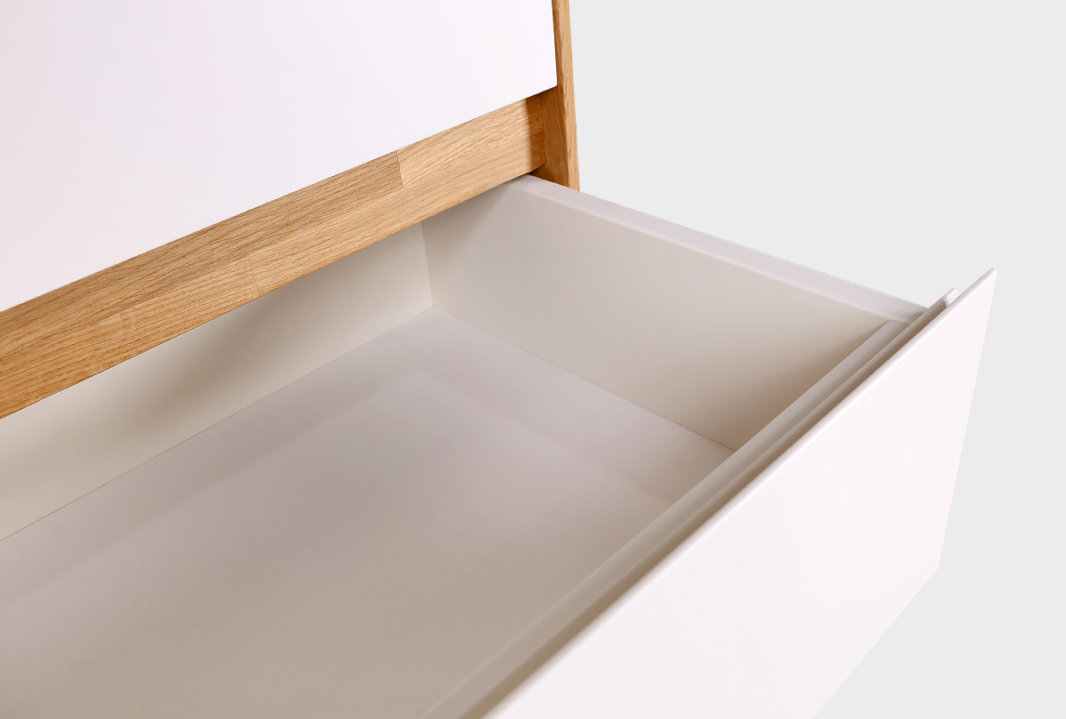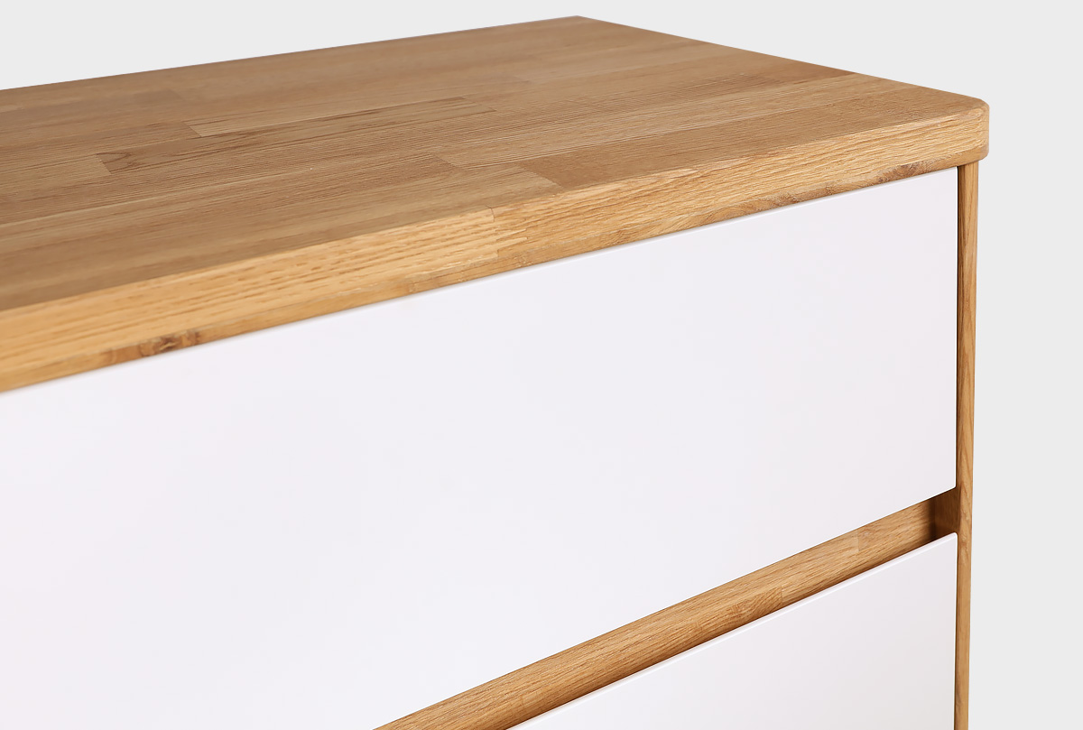 ✅ Комод изготовлен из комбинации материалов - массива дуба и эмали. Из массива дерева изготовлен корпус комода.