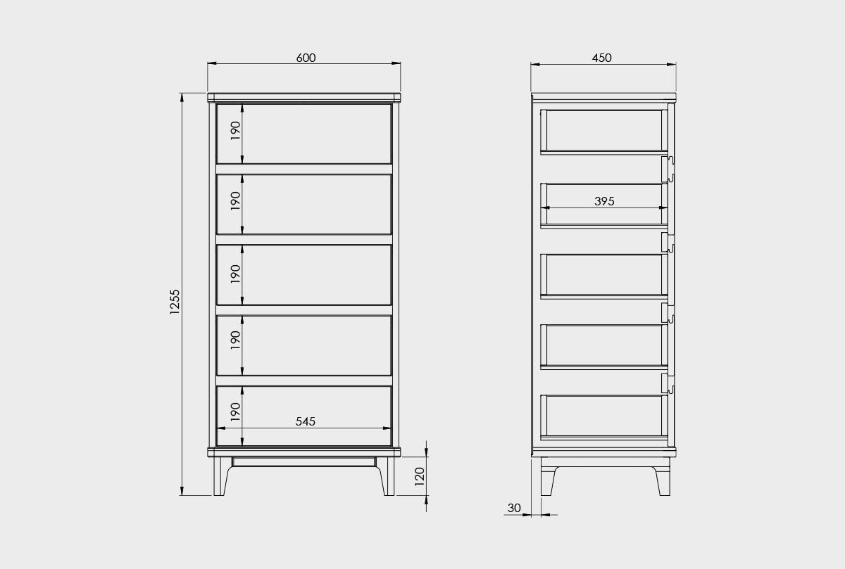 ✅ Комод изготовлен из комбинации материалов - массива дуба и эмали. Из массива дерева изготовлен корпус комода.