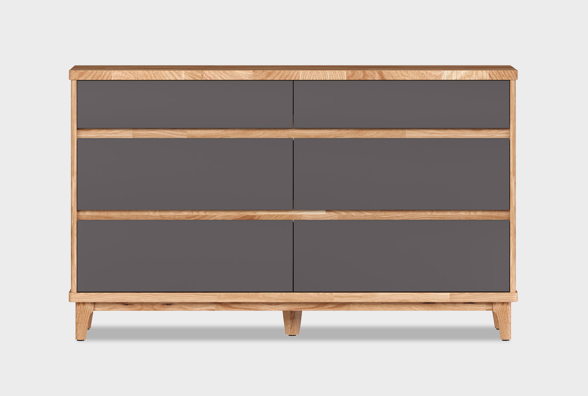 Широкий комод Уоллстрит в цвете «к-бейц-масло, ф-антрацит, вст-бейц-масло» для спальни из натурального дуба.