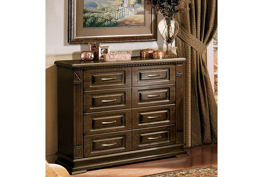 Массивный, но в то же время элегантный комод из коллекции «Верди Люкс» - это дань классике. Четкие формы и обилие резьбы гармонично дополнены изысканными оттенками на выбор. Пилястры и фигурный цоколь отсылают к Викторианской эпохе в Англии, когда в моде была помпезность и роскошь. Четыре вместительных выдвижных ящика позволят Вам хранить в них как одежду, так и постельное белье.