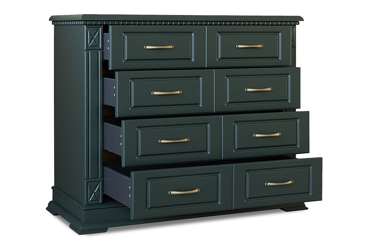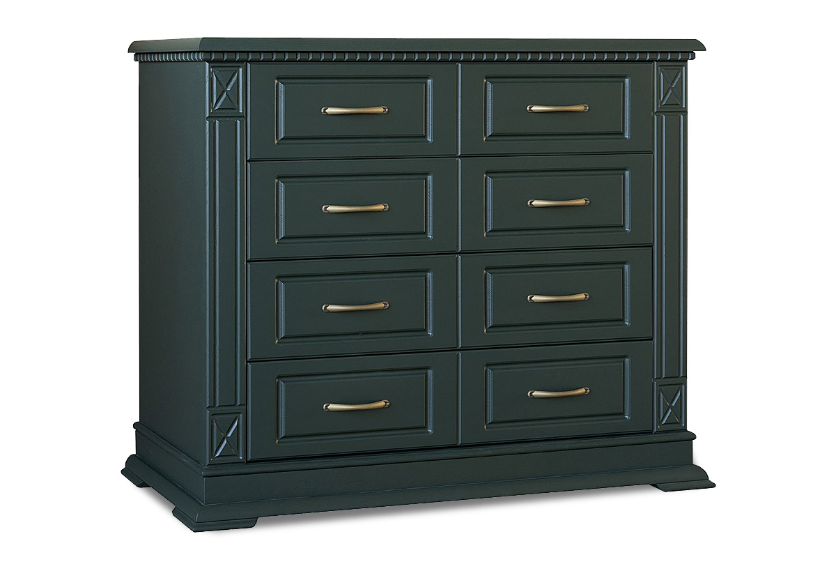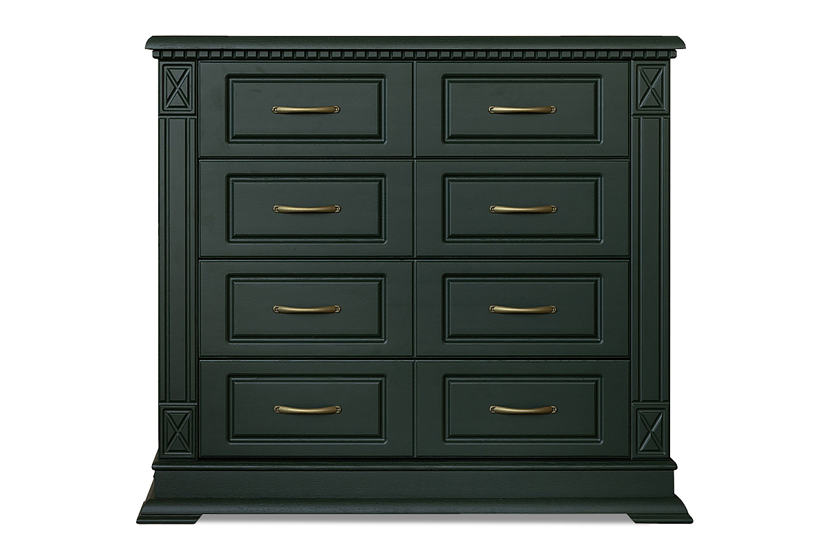 Массивный, но в то же время элегантный комод из коллекции «Верди Люкс» - это дань классике. Четкие формы и обилие резьбы гармонично дополнены изысканными оттенками на выбор. Пилястры и фигурный цоколь отсылают к Викторианской эпохе в Англии, когда в моде была помпезность и роскошь. Четыре вместительных выдвижных ящика позволят Вам хранить в них как одежду, так и постельное белье.