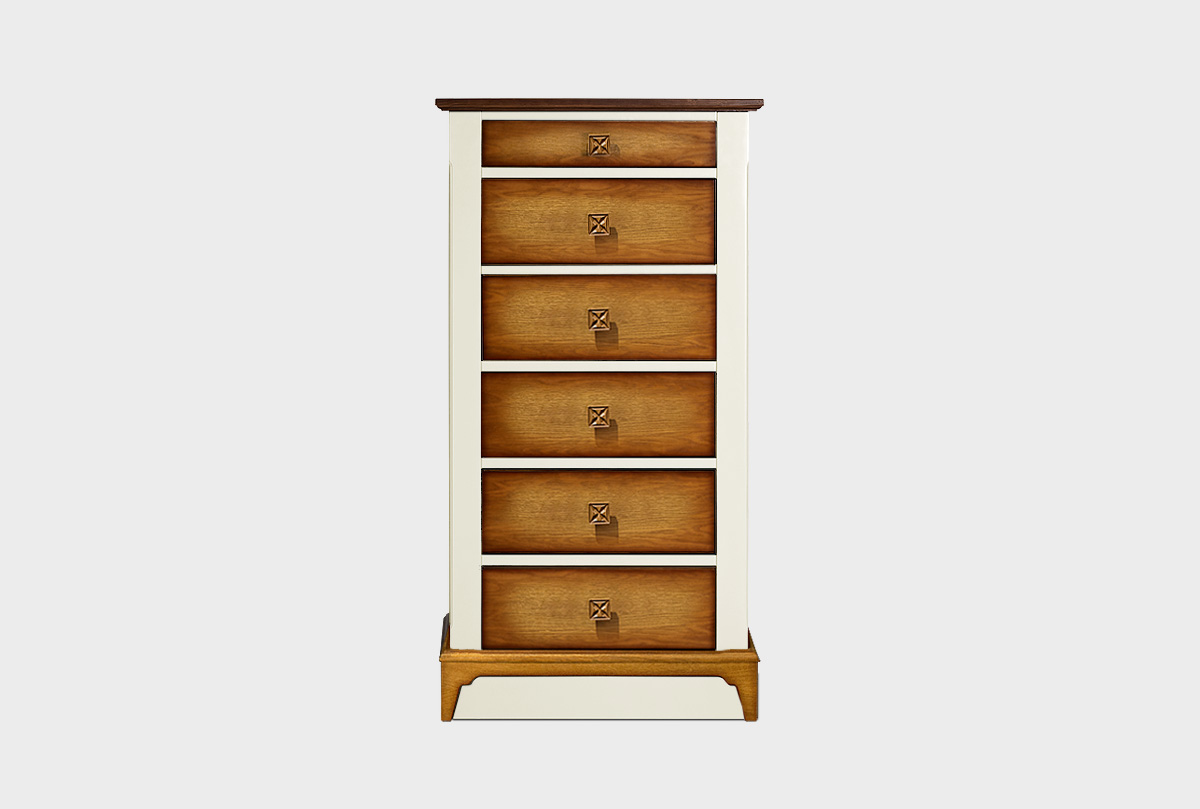 Комод высокий Бриансон из массива и шпона дуба, в цвете "жемчуг+дуб" с шестью выдвижными ящиками. Мебель для спальни «Бриансон» из дуба в стиле Прованс. Размеры изделия: 753 х 1427 х 450 мм.