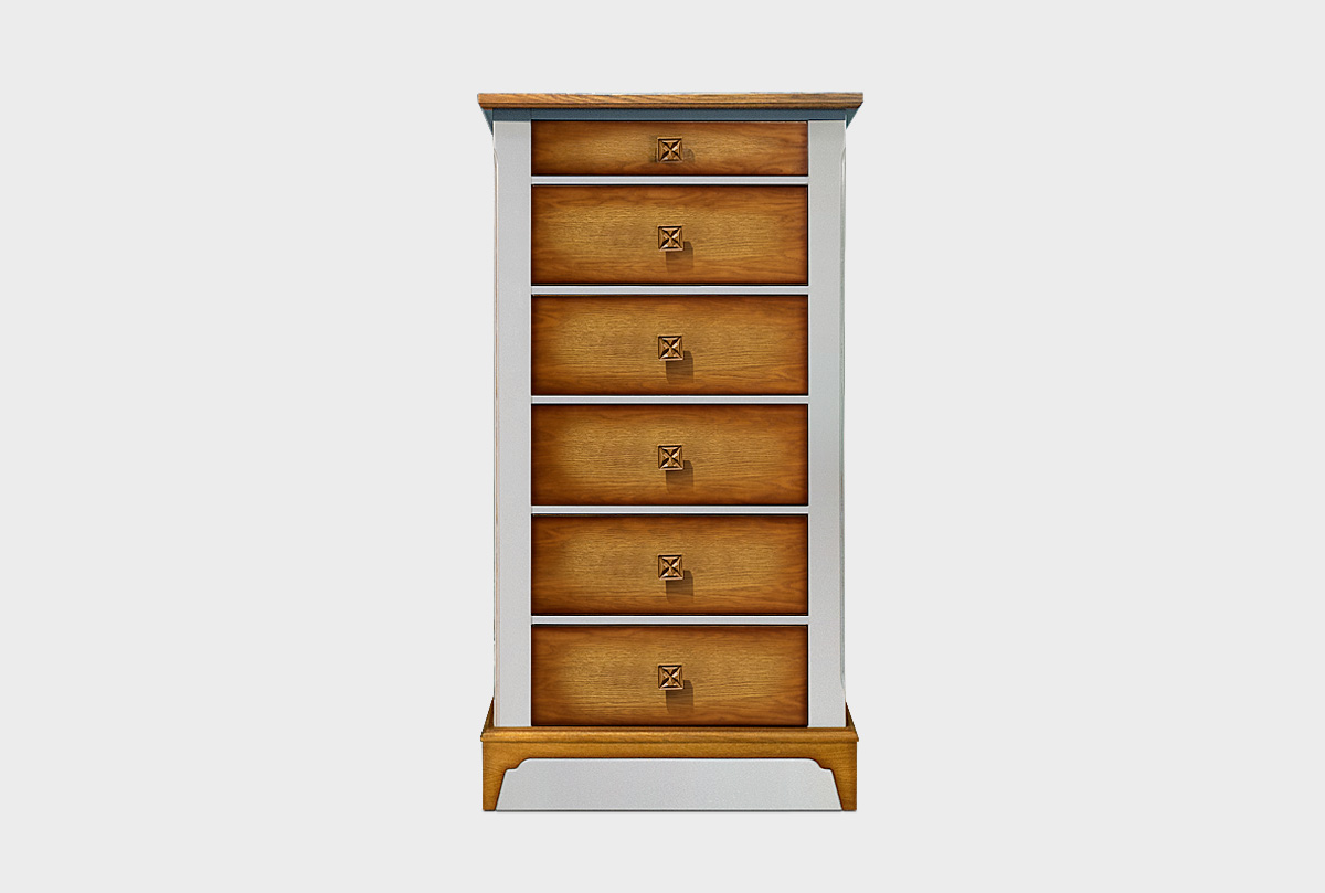 Комод высокий «Бриансон» из массива и шпона дуба, в цвете "муссон+дуб" с шестью выдвижными ящиками. Мебель для спальни «Бриансон» из дуба в стиле Прованс. Размеры изделия: 753 х 1427 х 450 мм.
