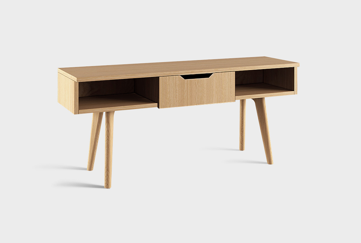 Низкая консоль Элва в цвете «бейц-масло» понравится тем, кто не любит вычурность, множество деталей. Что-то свое в ней найдут сторонники и классики, и современности.