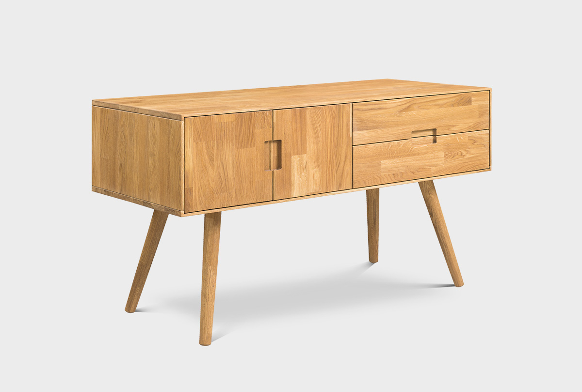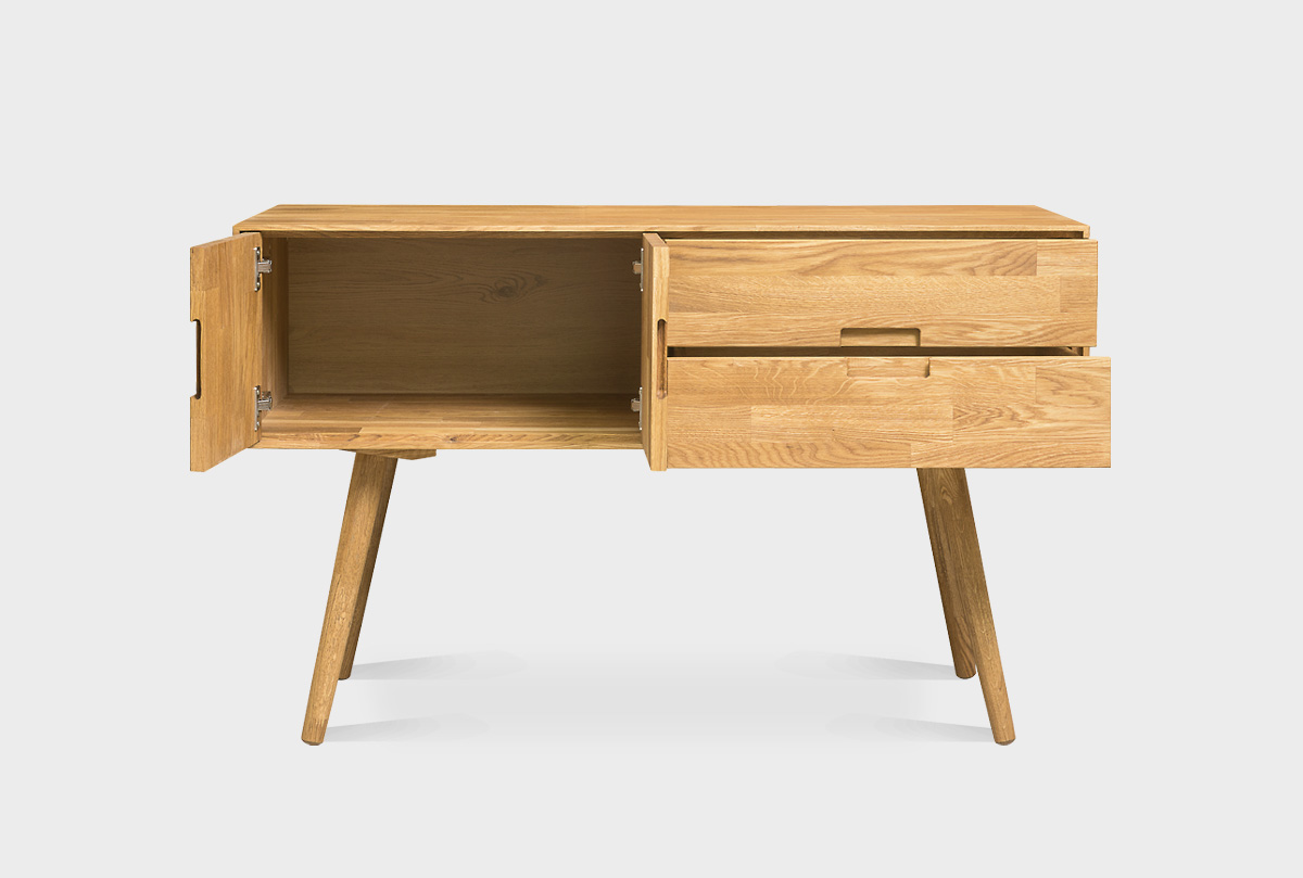 Консоль «Ирвинг» — изящный акцент для гостиной, спальни или прихожей. Благодаря компактным размерам и лёгкой конструкции она не перегружает интерьер, а подчеркивает его структуру. Форма строгая и сбалансированная, ручки аккуратно интегрированы в фасады за счёт фрезеровки. Высокие наклонные ножки добавляют композиции визуальную лёгкость и устойчивость.