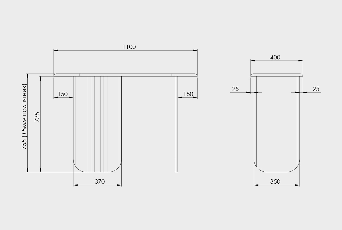 ✅ Размеры: ширина: 1100 мм, высота: 760 мм, глубина: 400 мм.