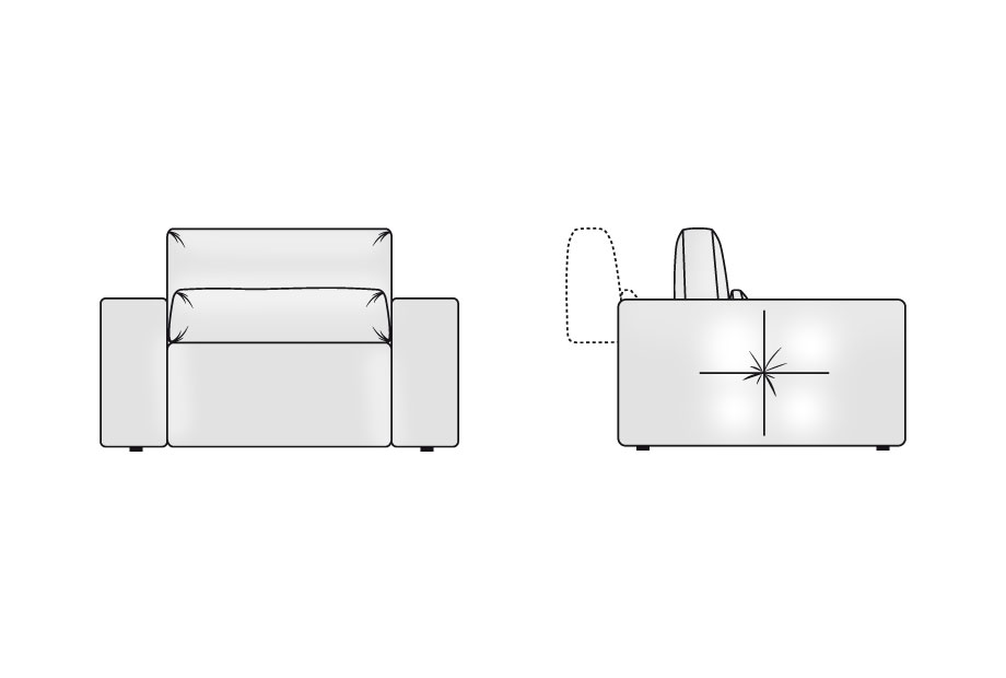 ✅ В спинку дивана установлен «шагающий» механизм типа «Hip-Hop», который позволяет перемещать подушку спинки относительно сидения и увеличивать глубину сидения с 530 мм до 930 мм.