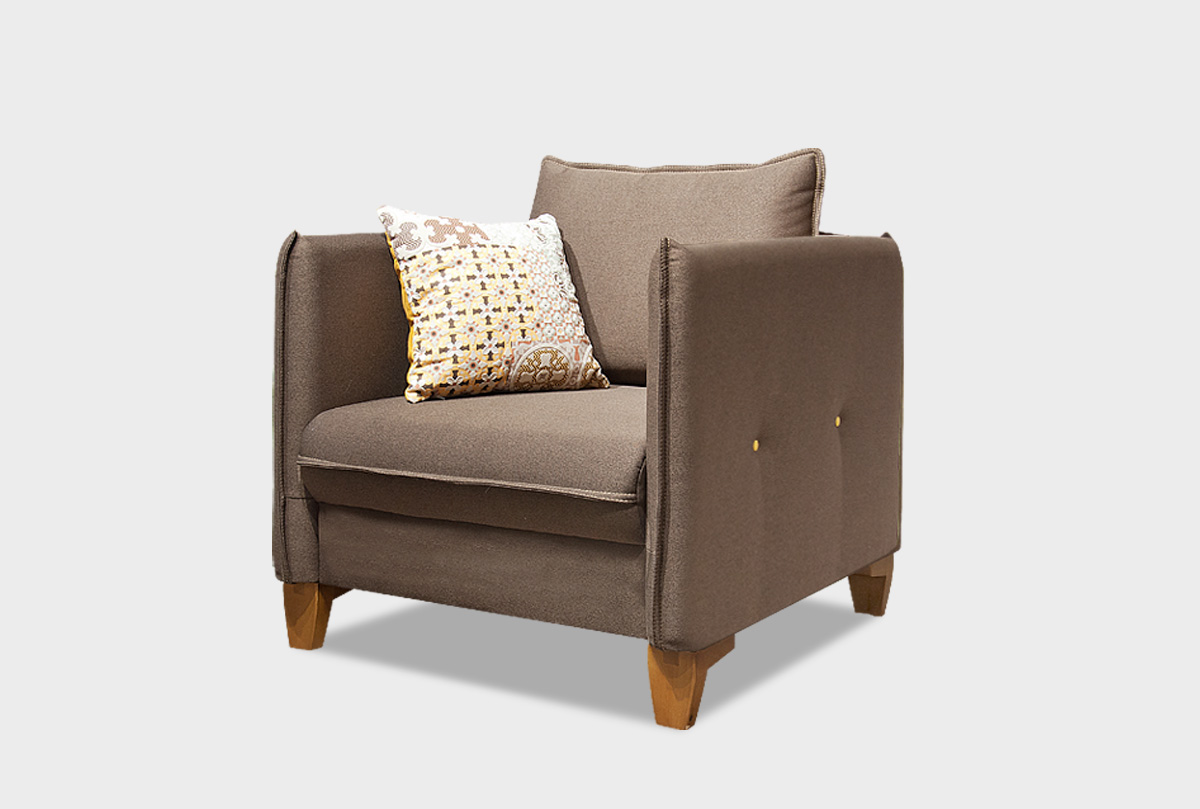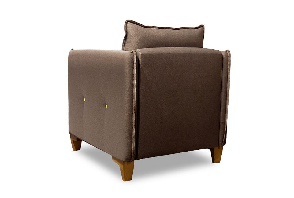 Благодаря широкой палитре оттенков обивки вы можете сделать кресло центром гостиной либо расставить акценты в комнате посредством ярких аксессуаров. Хотите добавить красочных цветов? Контрастный оттенок декоративной подушки, которая идет с диваном в комплекте, создаст нужное настроение. Декоративный кант по контуру сиденья, боковин и приспинных подушек придает креслу изюминку, а пиковка с пуговицами на боковинах делает «образ» завершенным. Кресло не оставит равнодушным ни одного ценителя современного стиля.