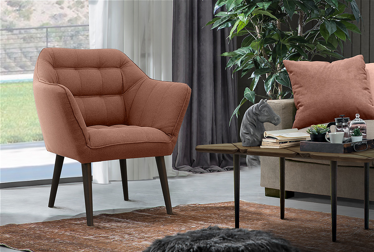 В основе дизайнерского решения кресла Остин лежат простота и элегантность. Модель идеально подходит к любому интерьеру, выполненному в современном стиле. Спинка украшена пиковкой и двойными строчками, что придает дизайну изысканности. Кант по периметру кресла подчеркивает геометрию изделия. Наполнитель подушек выполнен из высокоэластичного материала, который отвечает за удобный и комфортный отдых, а также обеспечивает большой срок эксплуатации. Эргономичная форма спинки имеет правильный изгиб, повторяющий естественное положение позвоночника. Высокие тонкие ножки придают креслу легкость и стильный заверенный образ.
